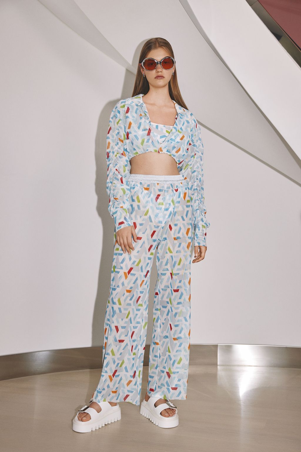 Two-piece unisex sets, which come in three different colorways, make an appearance in this collection taking inspiration from Mexico City’s leisurely attitudes. With the introduction of unisex pieces, Cubic Garden marks the brand’s launch into menswear being most of the styles genderless, which signals a shift in the brand and opens new possibilities for its future collections.