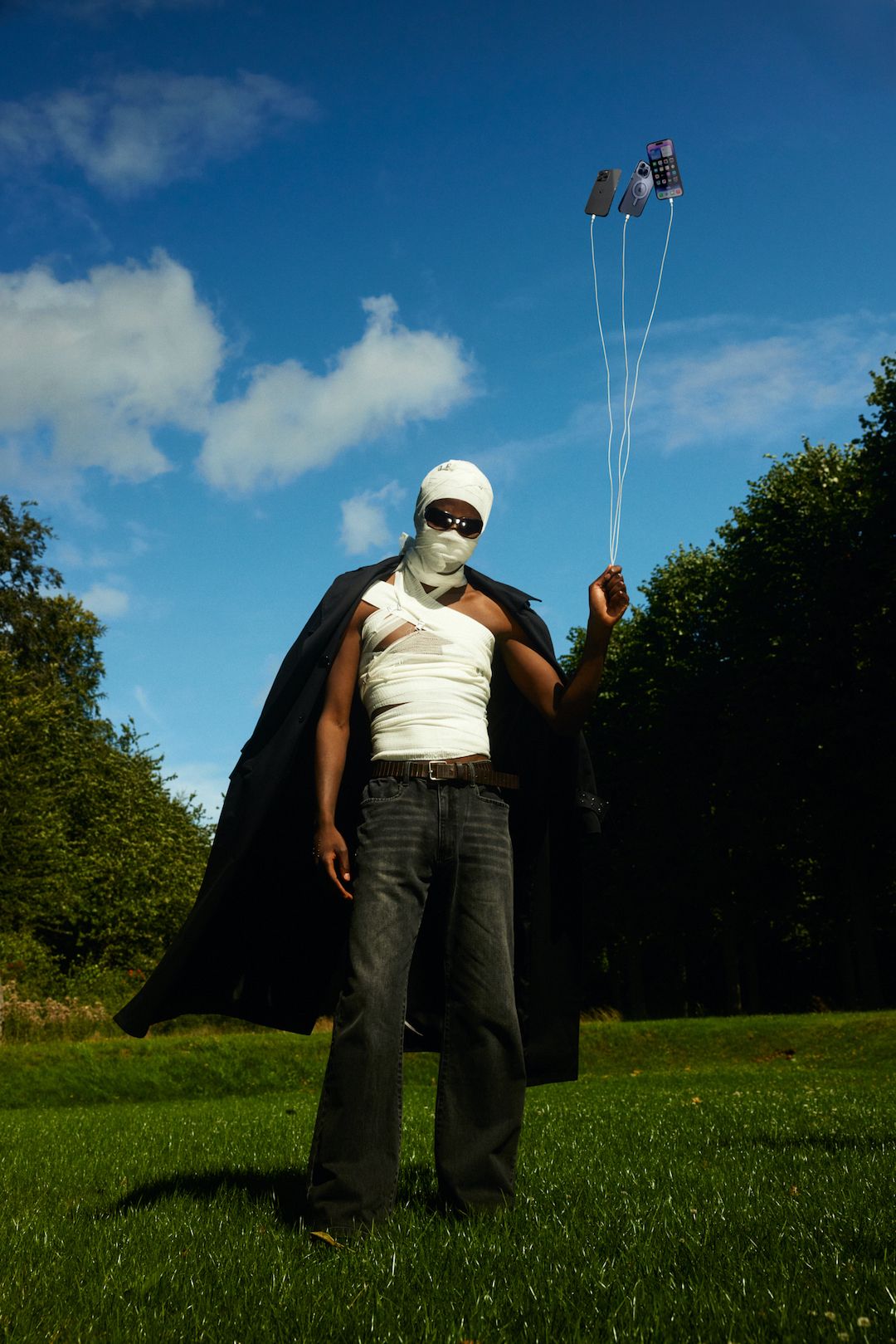 To effectively portray this intricate and extensive theme, 1999 THE STUDIO has placed a strong focus on overarching multifunctionality. This approach infuses pre-designed individuality into each piece of their Spring/Summer 2024 collection. Every item is meticulously crafted and designed to evoke empowerment, featuring sharp silhouettes that command a strong visual presence for the individual wearer. The incorporation of graphics and texts in the designs aims to recreate a digital atmosphere, enabling the wearer to make a statement in any environment they enter.