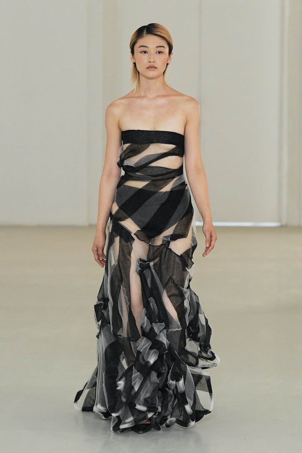 This season, Cropper's collection almost gave the impression of expressionist art. This art movement is particularly characterized by the depiction of the inner self and the feelings of the artist, rather than the outer world of objects. Such expressionist characteristics are consistent with Cropper’s perception of herself as she admits that she is “quite introverted, and fashion has become [her] way of expressing [herself]”.