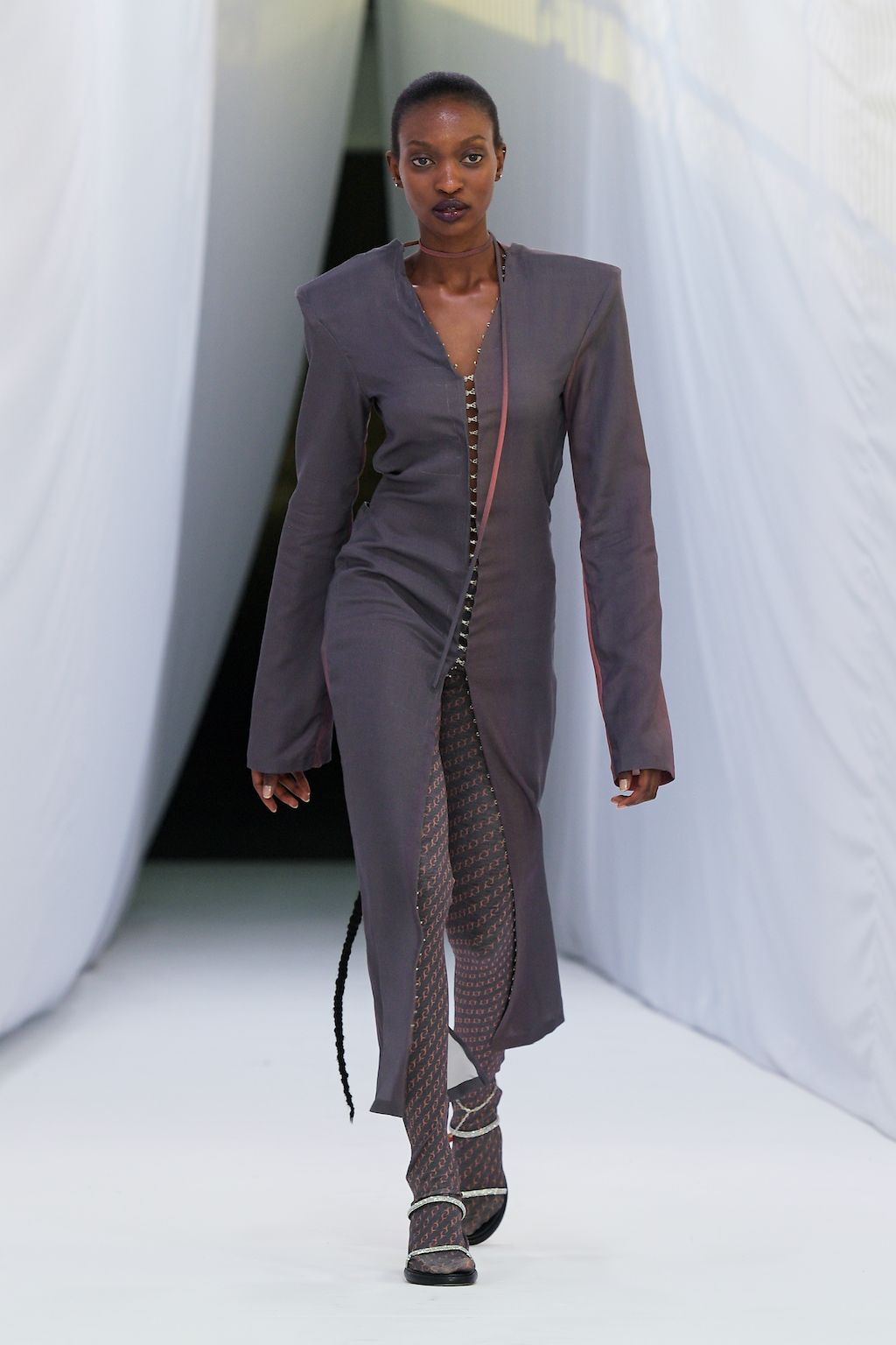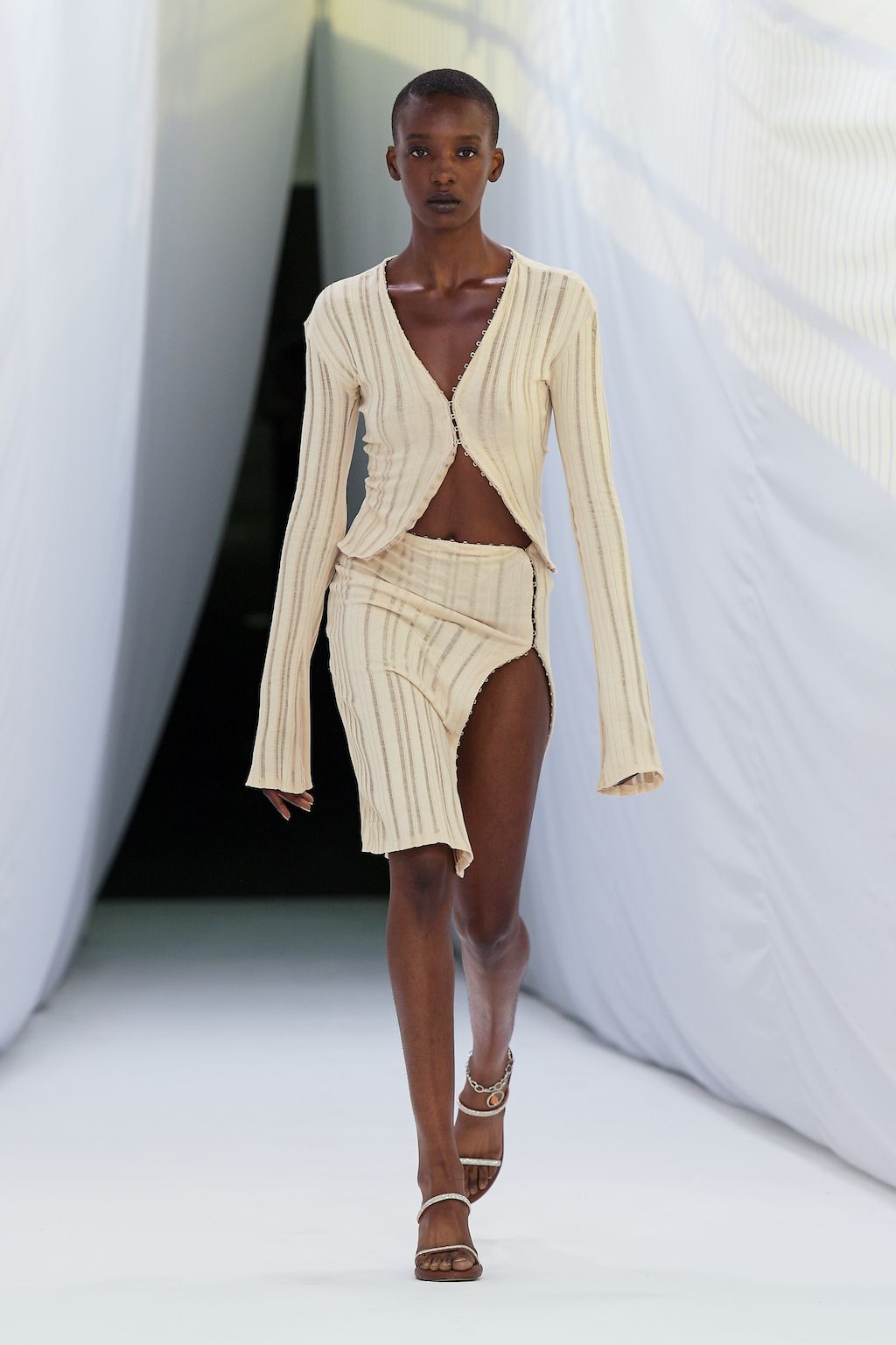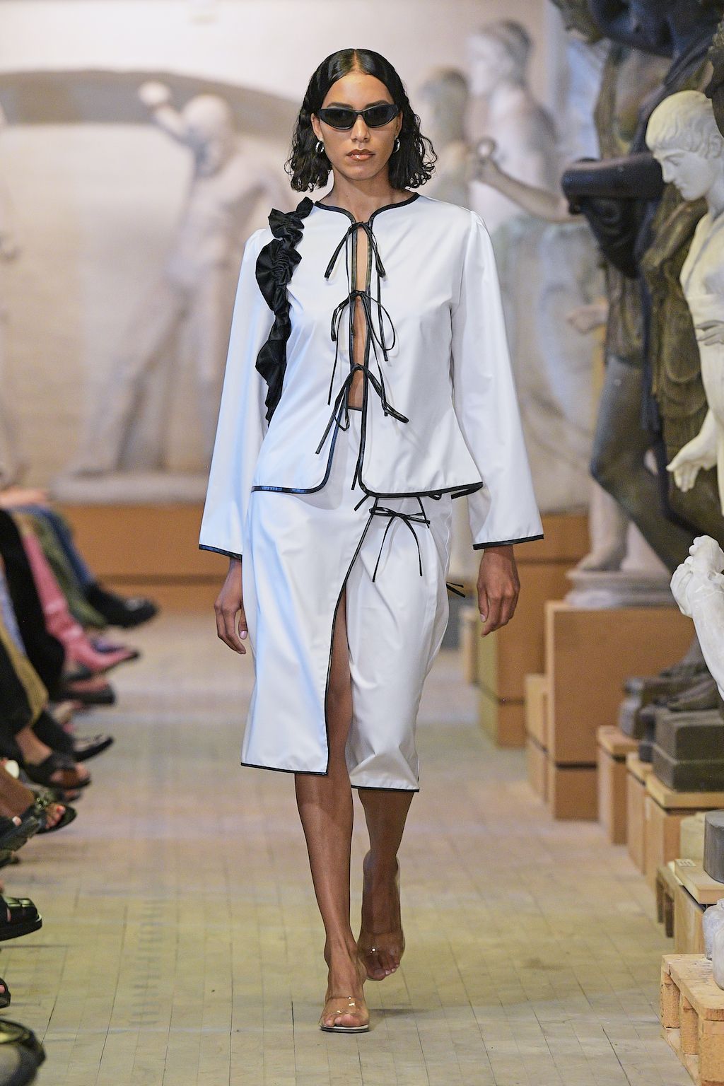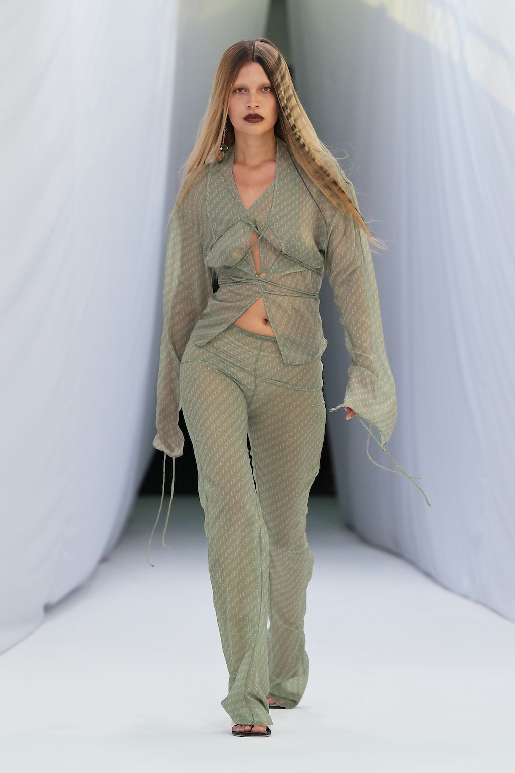 Danish label OpéraSPORT celebrated their debut at Copenhagen Fashion Week and was openly said to be one of the most awaited shows on the calendar. Founded by Awa Malina Stelter and Stephanie Gundelach, their label demonstrates that one does not need to compromise on sexiness and sustainability. The two draw special inspiration from the metropolises of Copenhagen and Paris, but also confident and powerful women such as their current muse - model Alva Claire. For SS23 OpéraSPORT sent down a very size-inclusive collection ranging from XS-XXL dominated by fine knitted cardigans and dresses, as well as quilted jackets and bags in sunset pink and hues of purple. During the finale, both fired up the selected audience with Beyoncé’s latest catchy tune “Break my Soul” alluding to a wishful future for them true to the lyrics “I'm on that new vibration, I'm building my own foundation”.