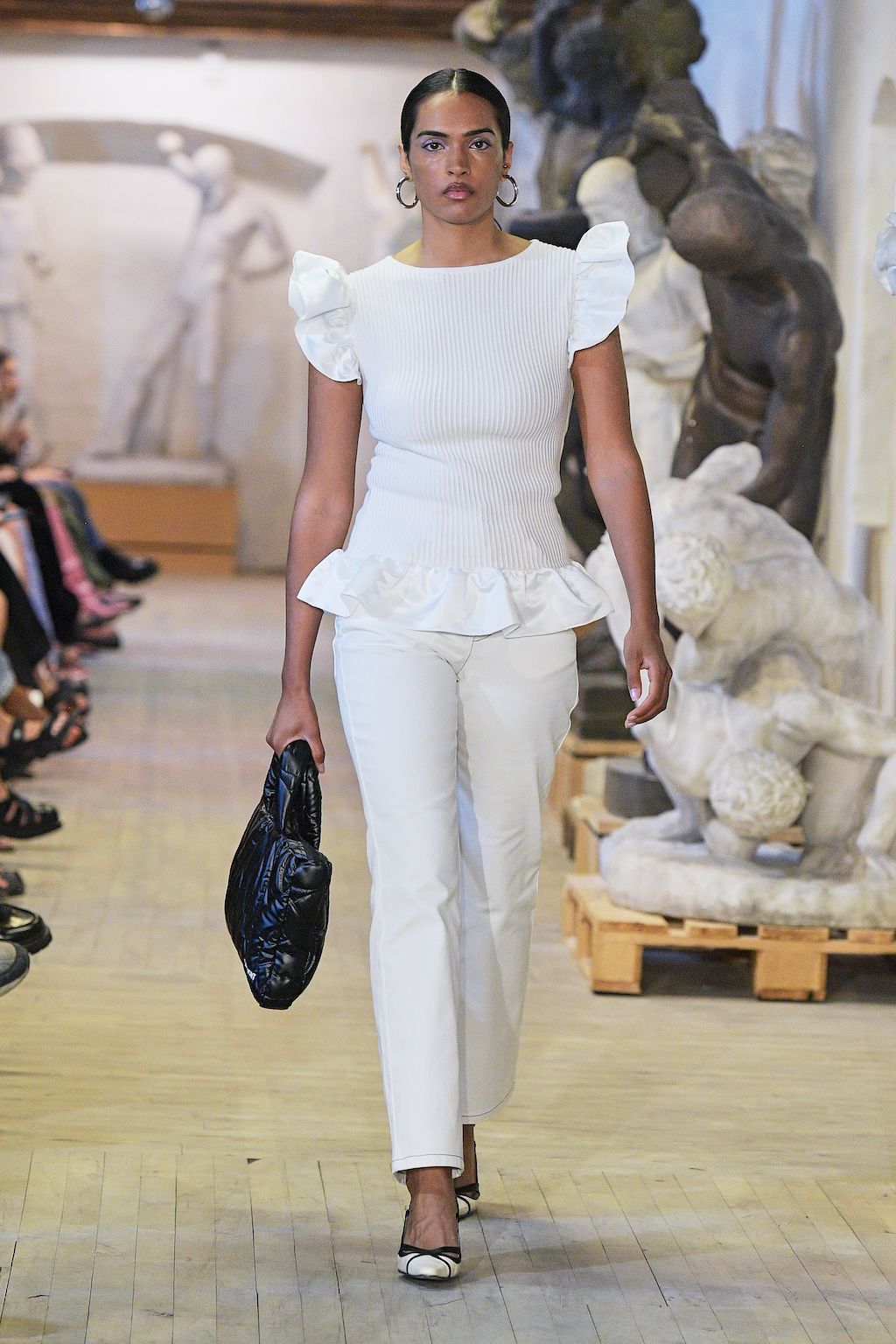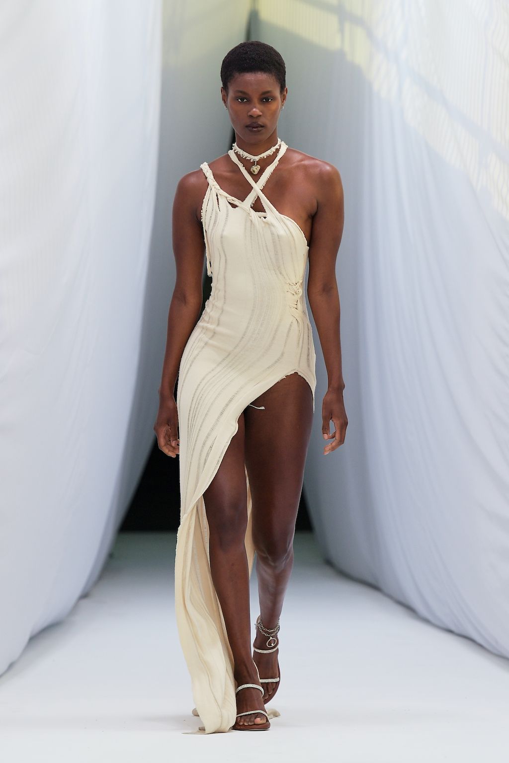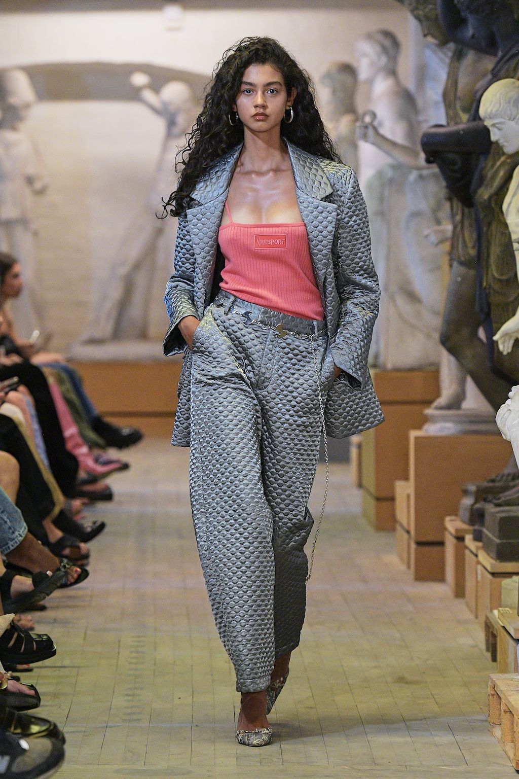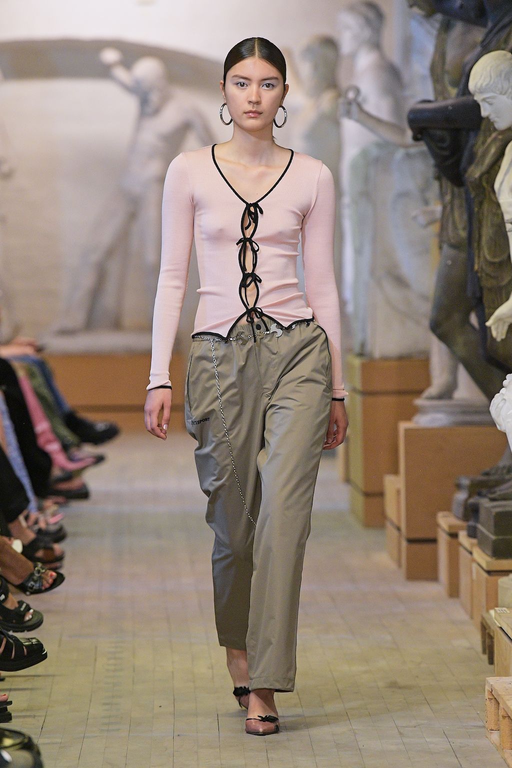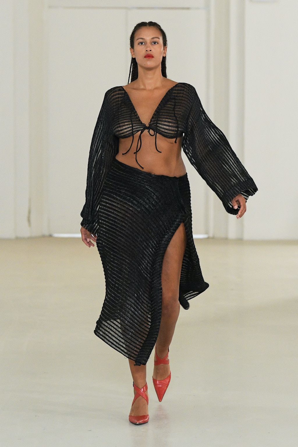 Danish label OpéraSPORT celebrated their debut at Copenhagen Fashion Week and was openly said to be one of the most awaited shows on the calendar. Founded by Awa Malina Stelter and Stephanie Gundelach, their label demonstrates that one does not need to compromise on sexiness and sustainability. The two draw special inspiration from the metropolises of Copenhagen and Paris, but also confident and powerful women such as their current muse - model Alva Claire. For SS23 OpéraSPORT sent down a very size-inclusive collection ranging from XS-XXL dominated by fine knitted cardigans and dresses, as well as quilted jackets and bags in sunset pink and hues of purple. During the finale, both fired up the selected audience with Beyoncé’s latest catchy tune “Break my Soul” alluding to a wishful future for them true to the lyrics “I'm on that new vibration, I'm building my own foundation”.