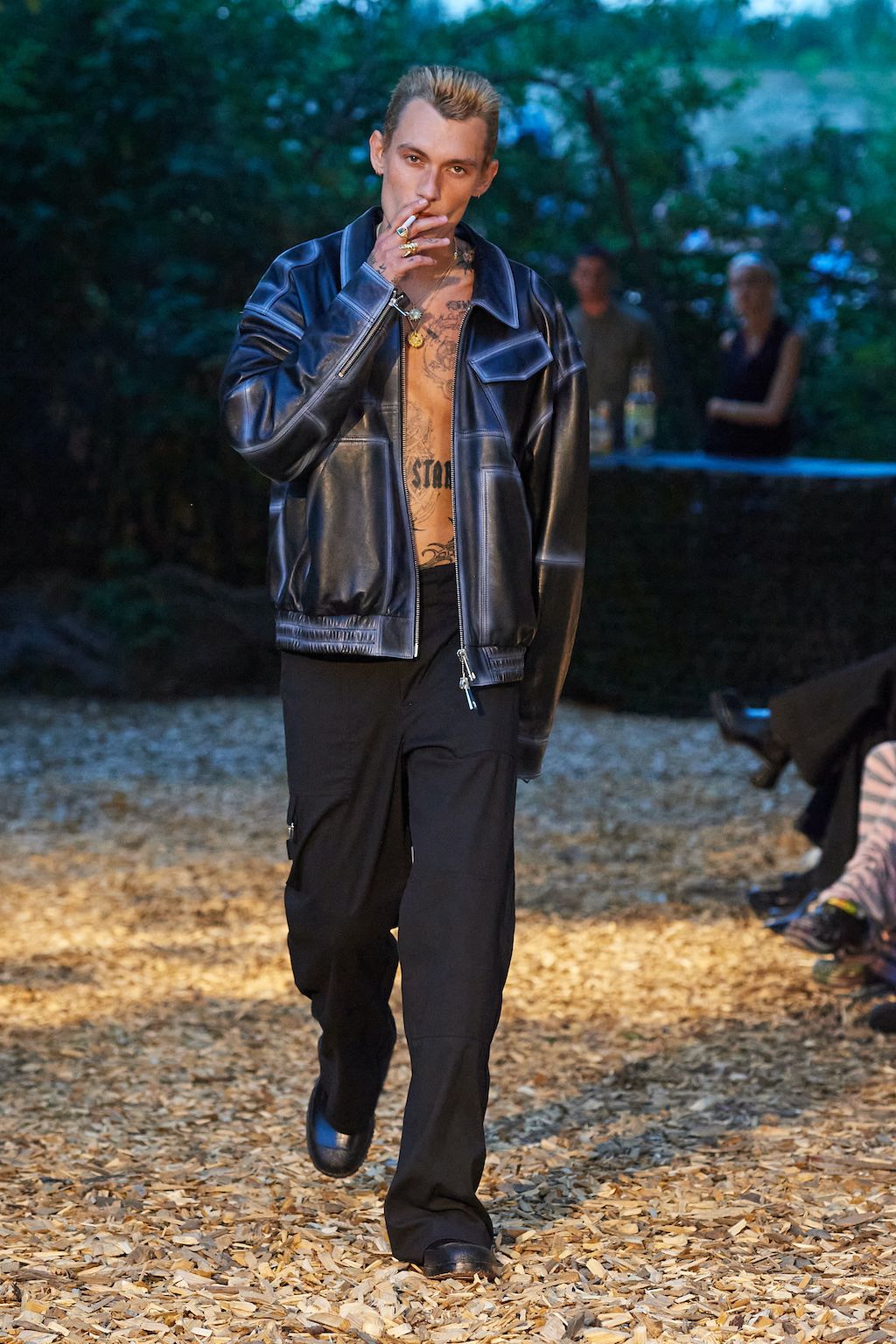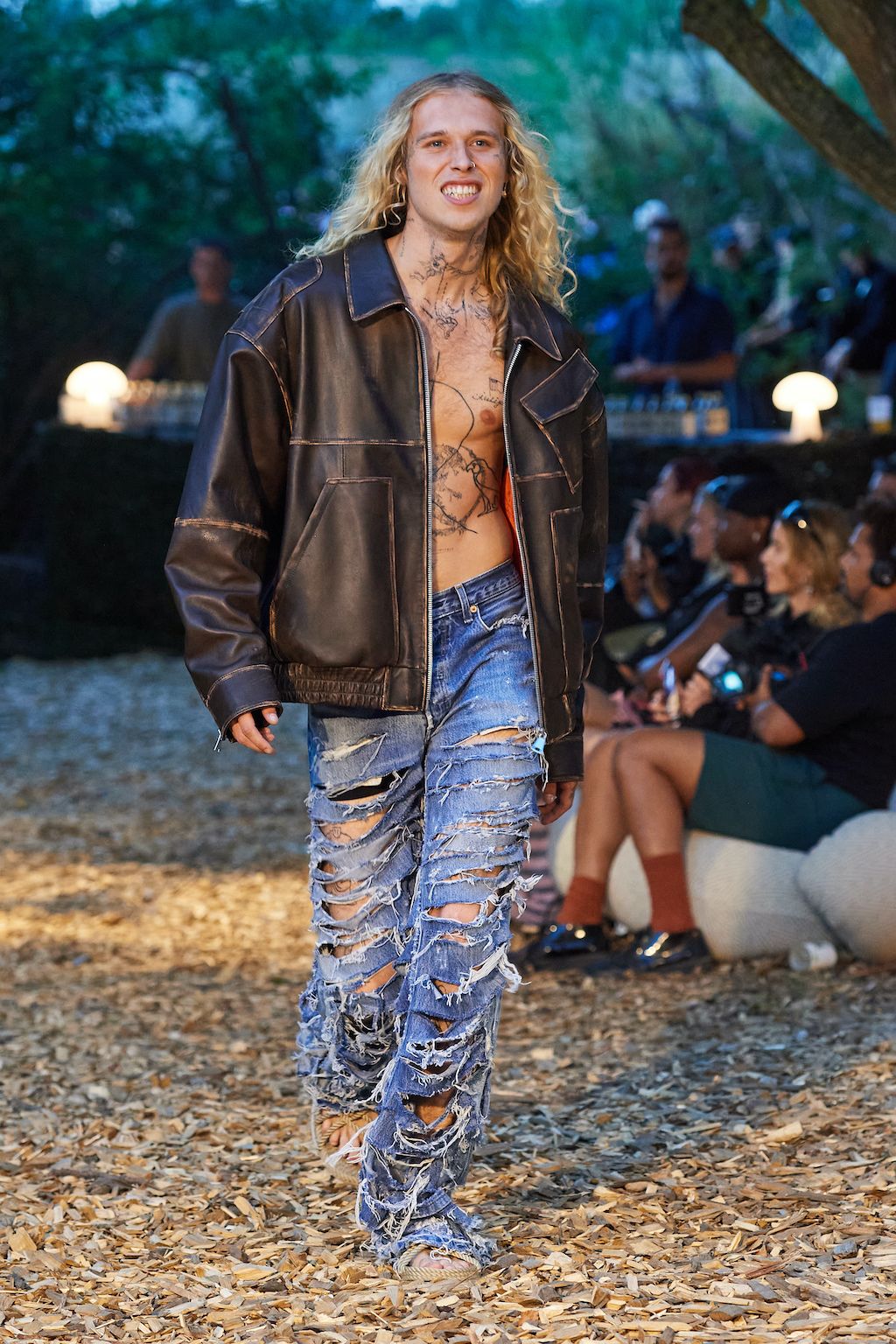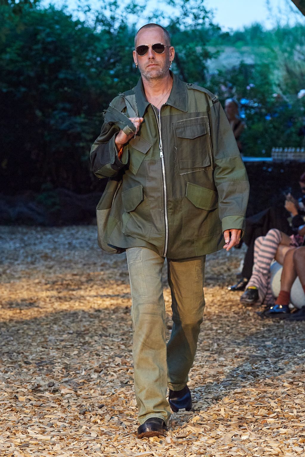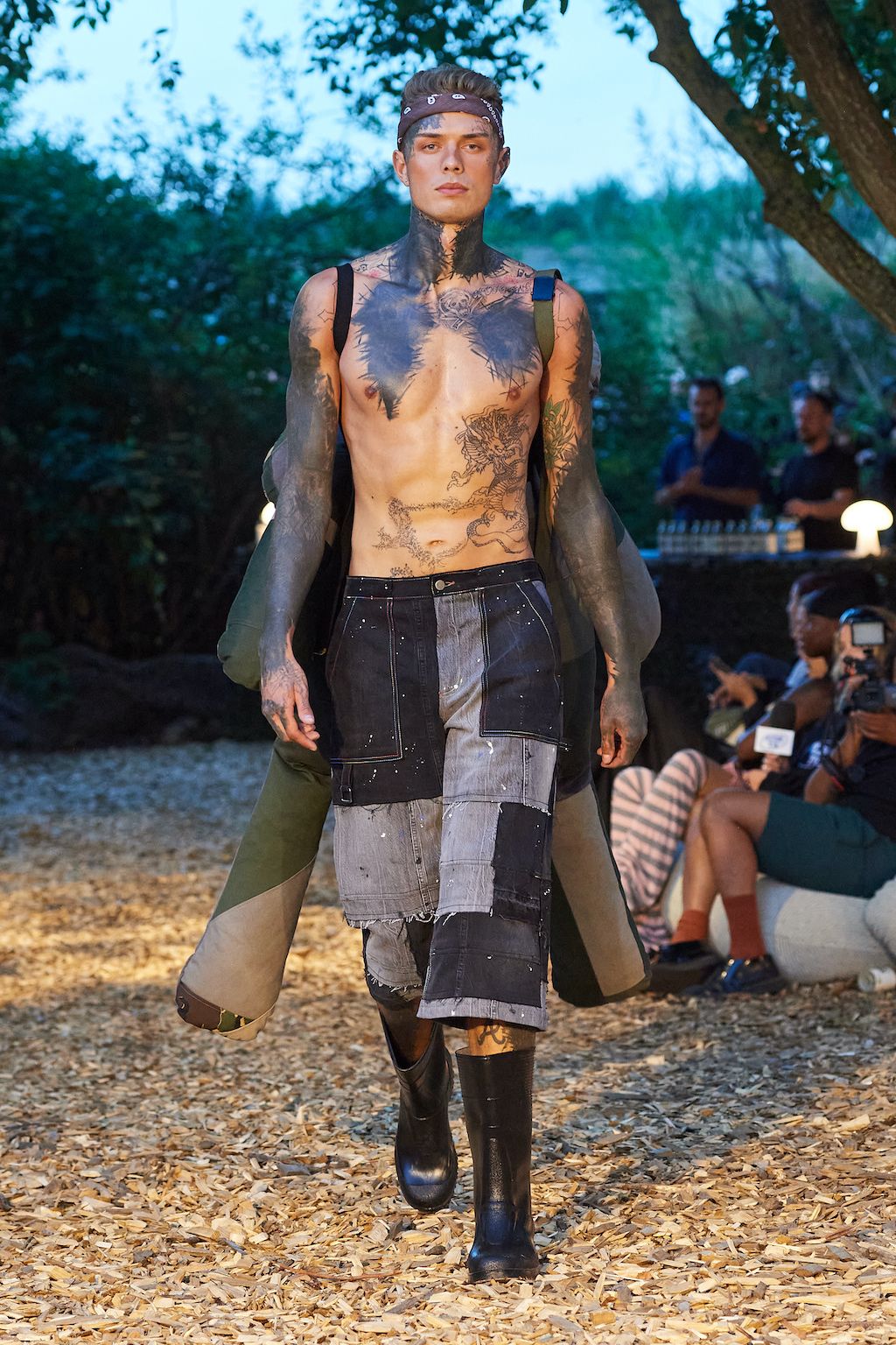 For the upcoming SS23 season, Simon and Nanna Wick have drawn heavy inspiration from Francis Ford Coppola’s “Apocalypse Now” from 1979. The SS23 elaborates on the difficult themes of the film, from war to its psychological impact on people, which feels very relevant in today’s world of conflict. Hosted in the woods, the collection included military gear inspired clothing such as bomber jackets and cargo pants made out of deadstock or upcycled materials.