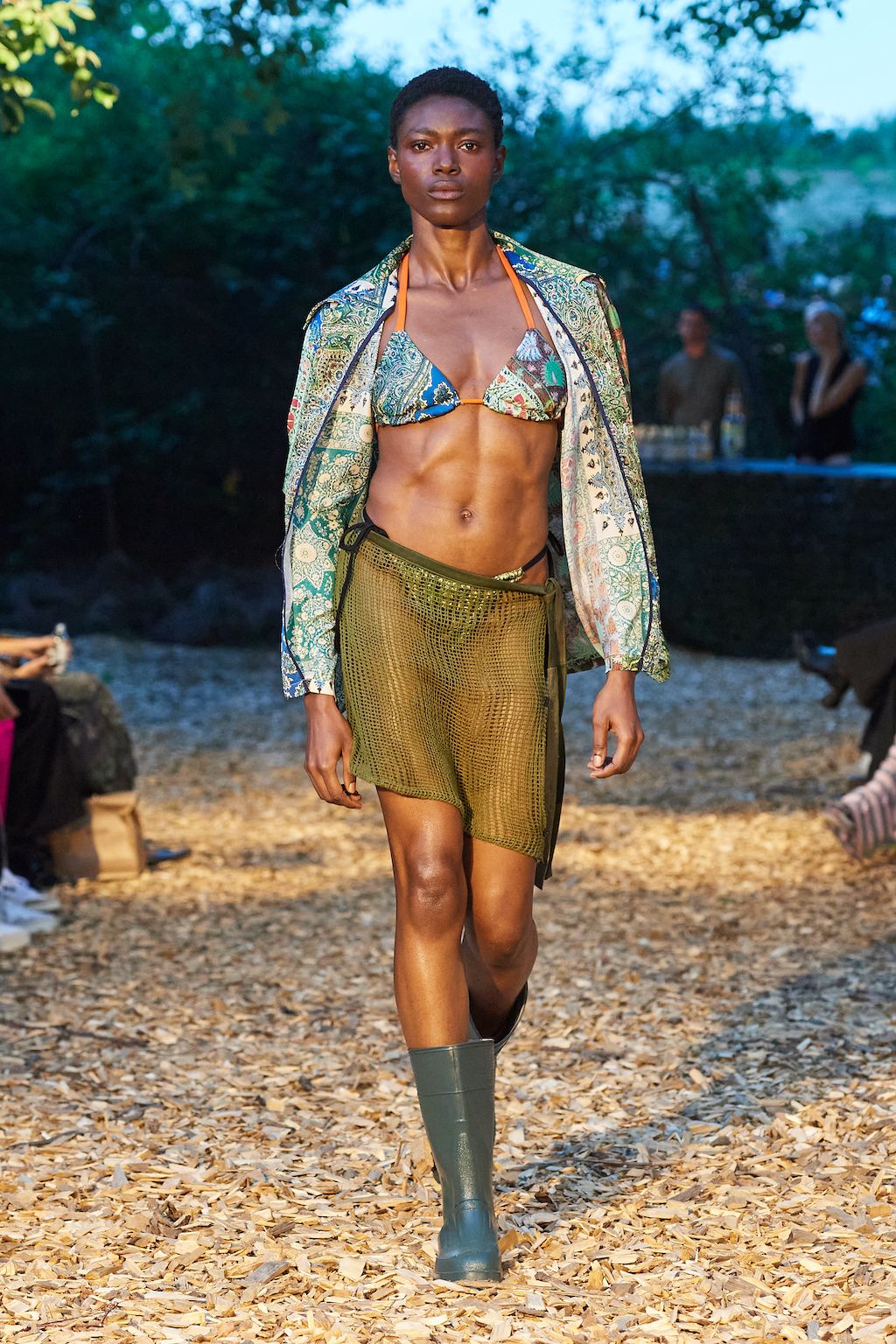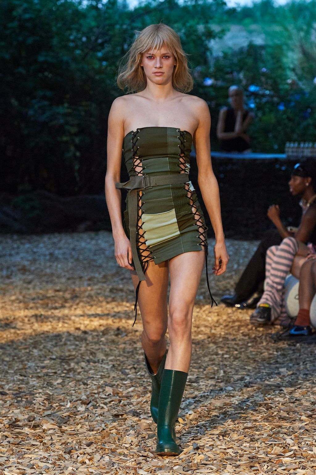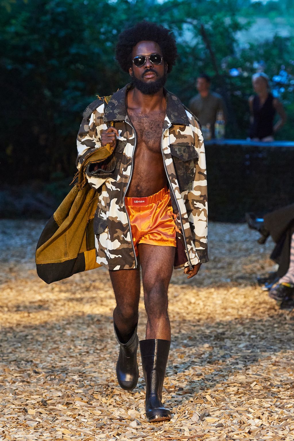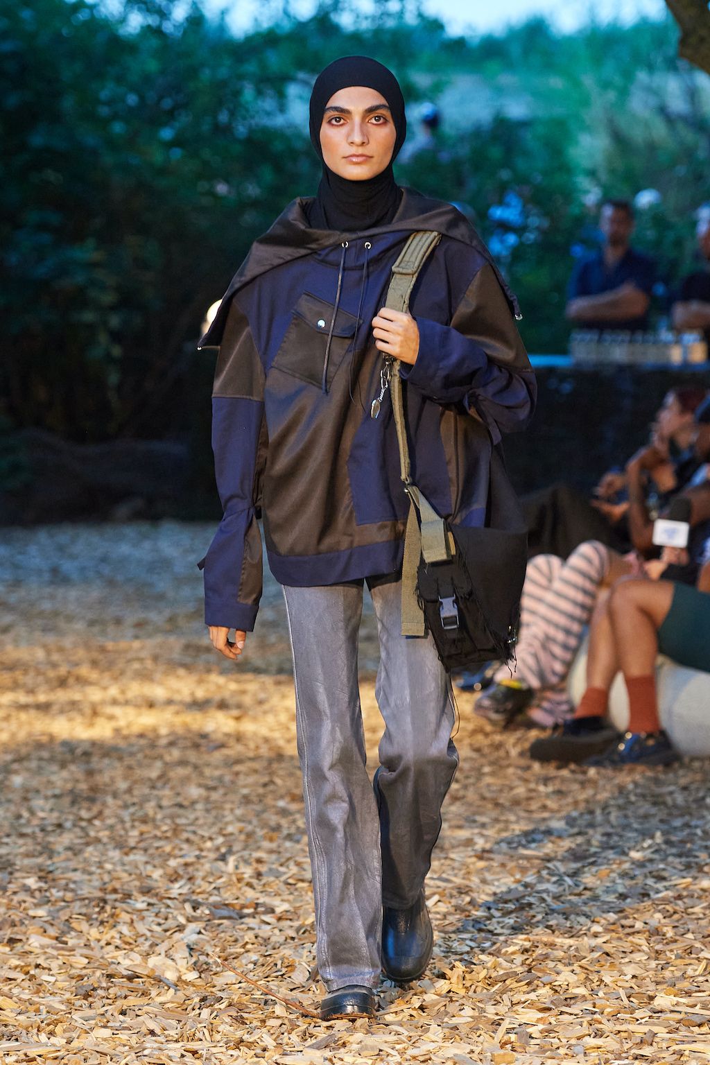 For the upcoming SS23 season, Simon and Nanna Wick have drawn heavy inspiration from Francis Ford Coppola’s “Apocalypse Now” from 1979. The SS23 elaborates on the difficult themes of the film, from war to its psychological impact on people, which feels very relevant in today’s world of conflict. Hosted in the woods, the collection included military gear inspired clothing such as bomber jackets and cargo pants made out of deadstock or upcycled materials.