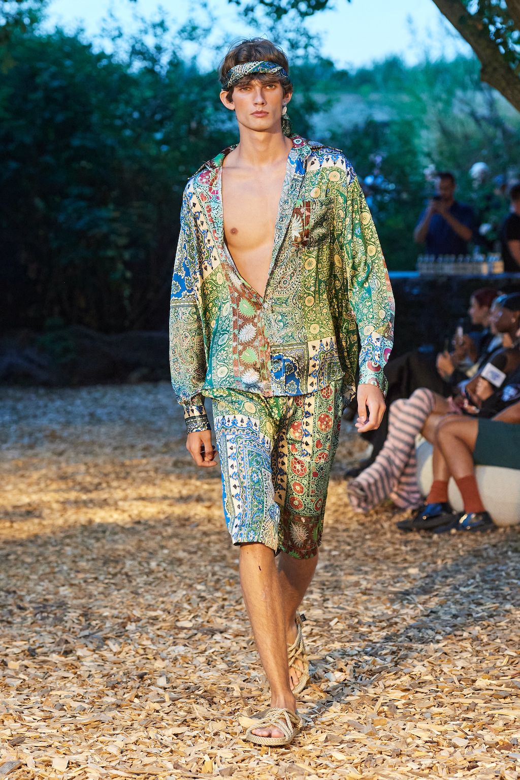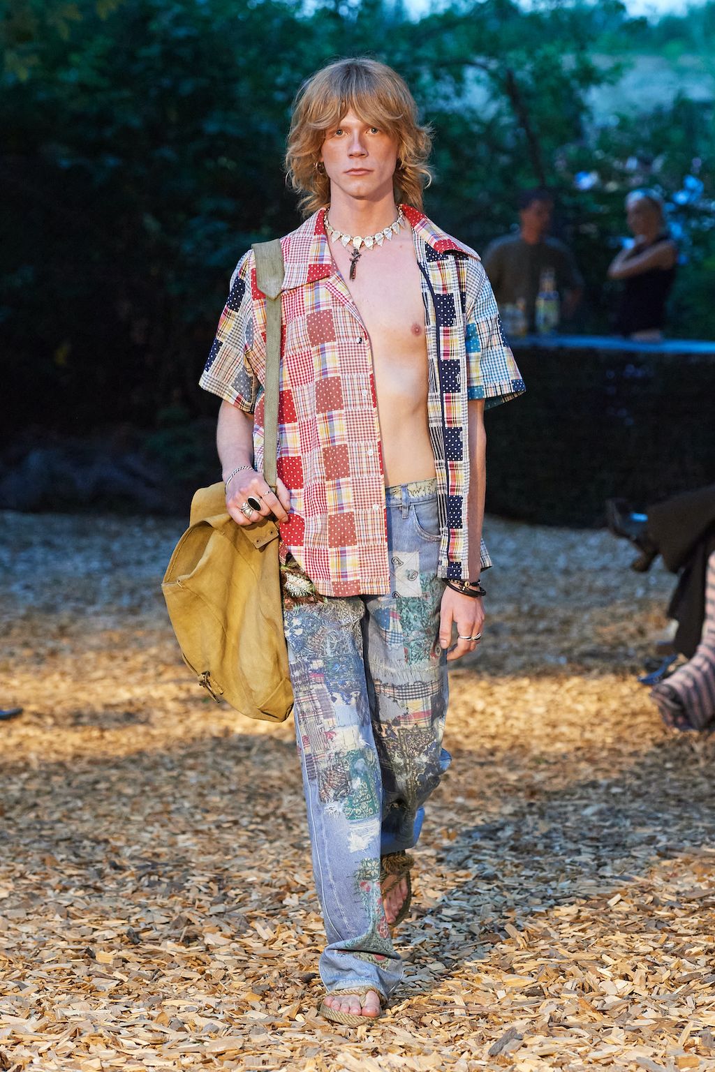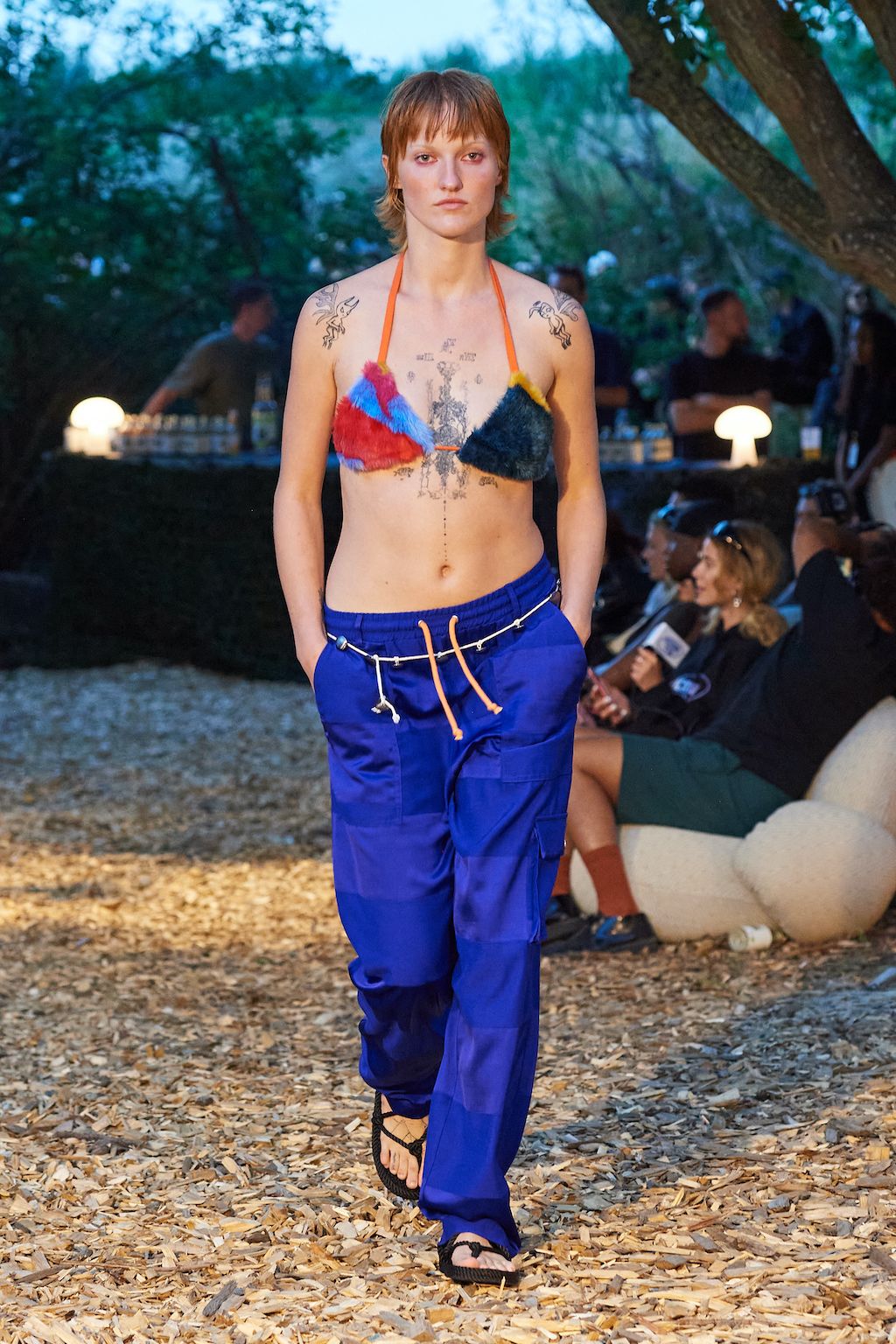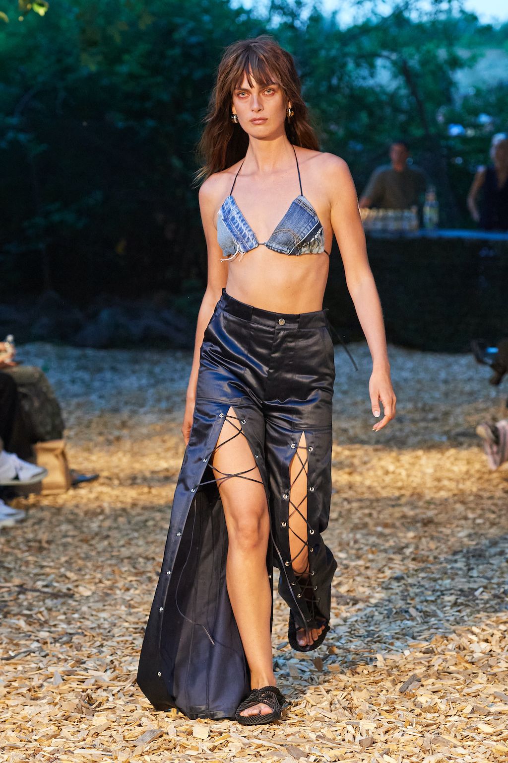 For the upcoming SS23 season, Simon and Nanna Wick have drawn heavy inspiration from Francis Ford Coppola’s “Apocalypse Now” from 1979. The SS23 elaborates on the difficult themes of the film, from war to its psychological impact on people, which feels very relevant in today’s world of conflict. Hosted in the woods, the collection included military gear inspired clothing such as bomber jackets and cargo pants made out of deadstock or upcycled materials.