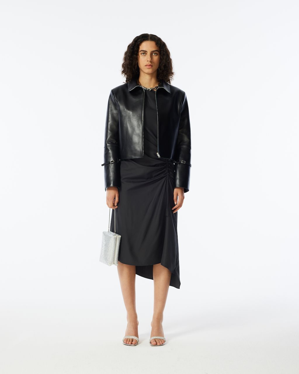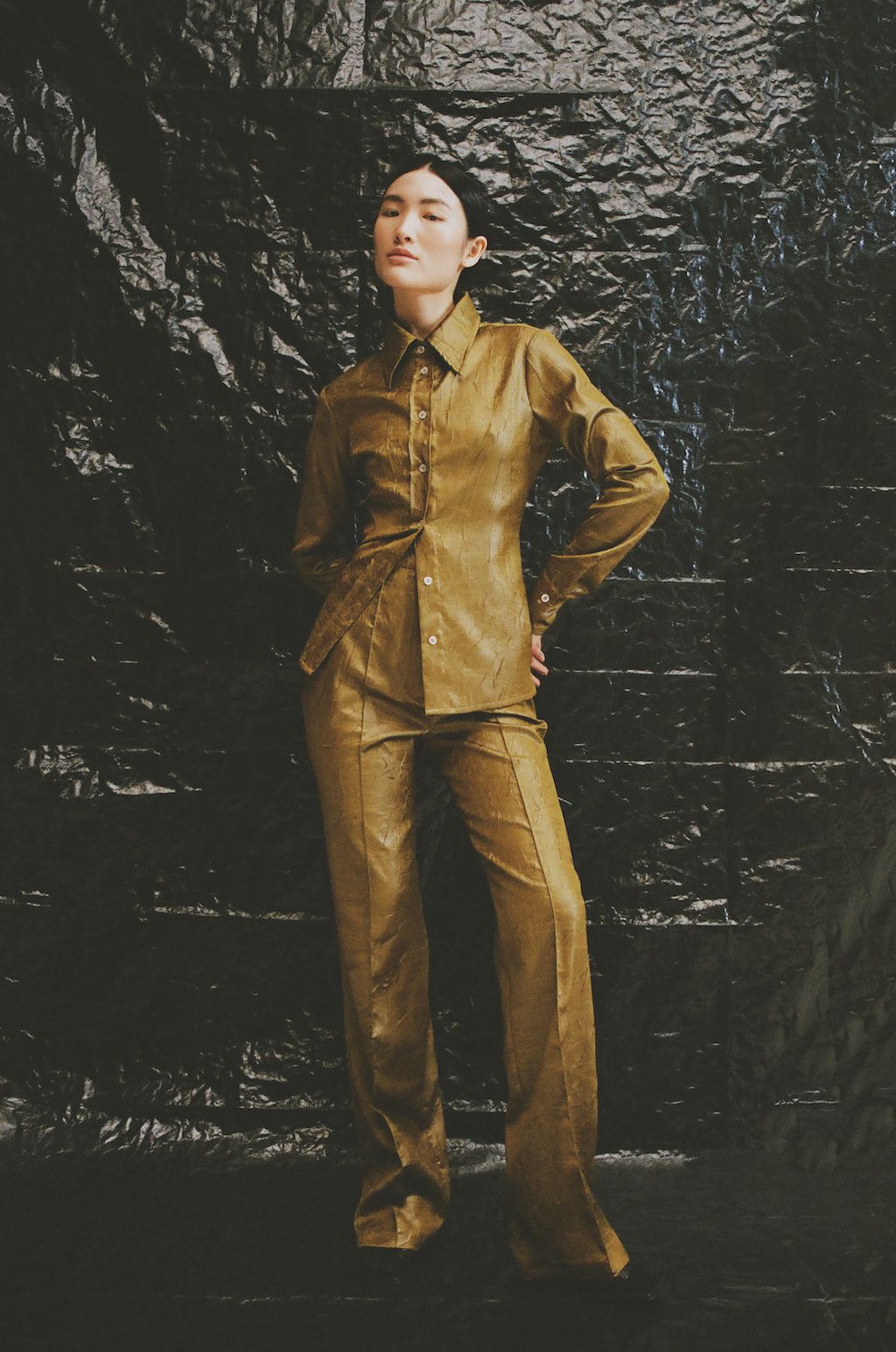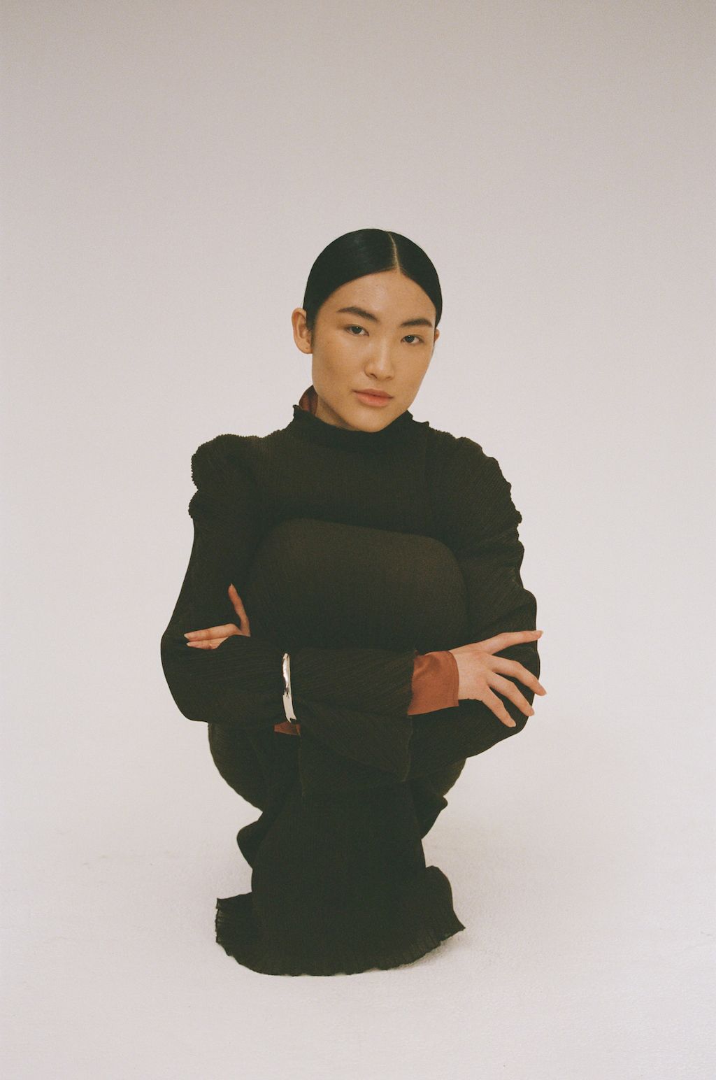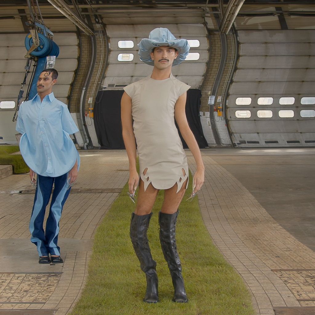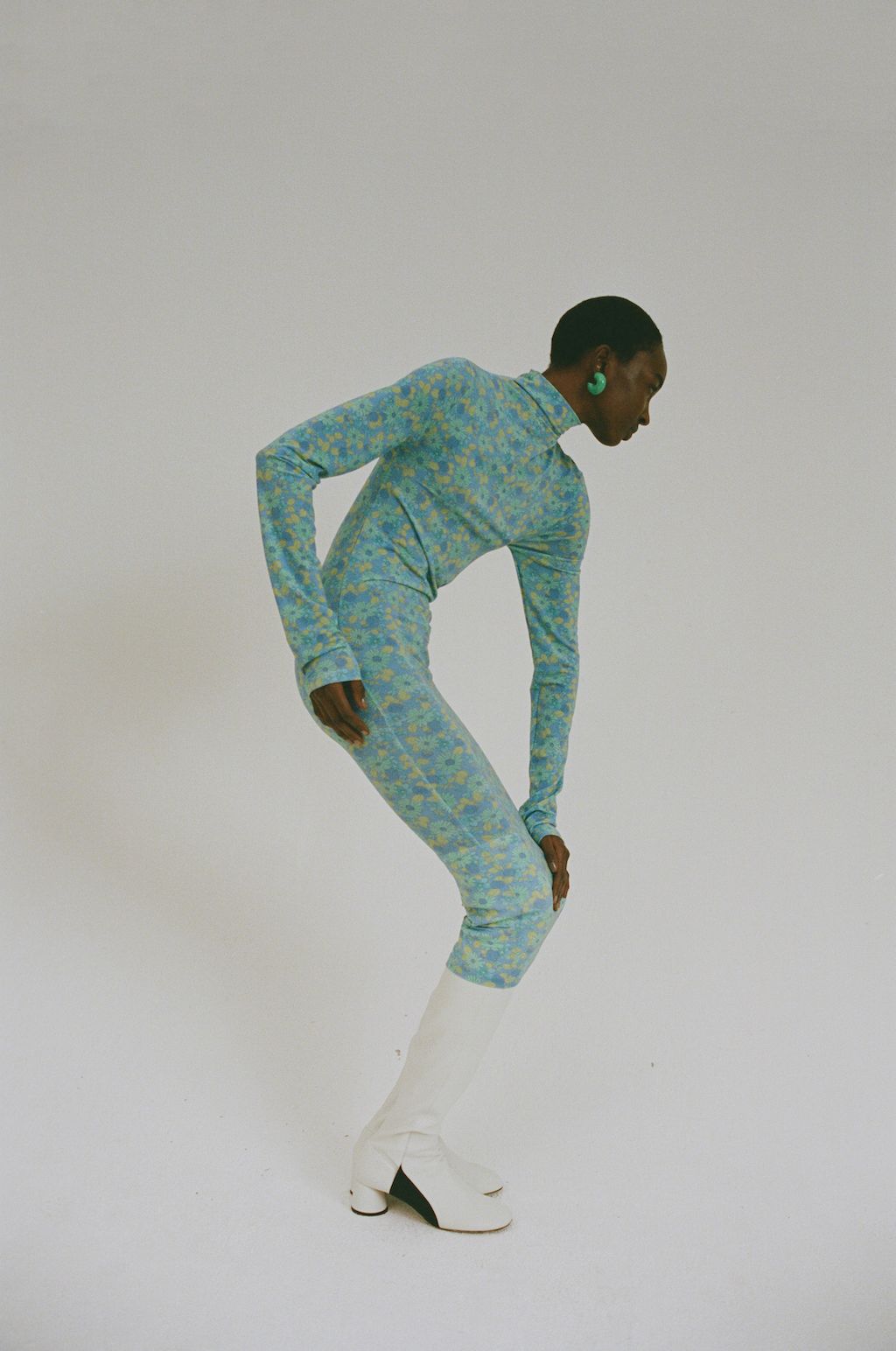 The next Amsterdam addition is label Ninamounah headed by Ninamounah Langestraat and Paiman Azizi. Uncommonly, the designer with Indonesian roots initially started studying biology before she found her passion in textile design and philosophy at Rietveld Academy. Most people who dramatically change their academic path, wouldn’t look back to their initial choice - not Ninamounah though. The designer does not feel like compromising on either of the two disciplines. She even calls herself “a biologist that uses fashion as a medium”. In other words, Ninamounah uses biological methods in order to dissect the deeper layers of the cultural mantle found in fashion design. In her work she strongly outlines the animalistic characteristics in humanity and states that “we are all animals wearing a dress of culture”. Reappearing styles in her collections are leather motor suits, French corsetry and pinstripe tailoring. The brand returns to The Fashion Olymp which is Paris Fashion Week after their successful début earlier this year. It would have not been a Ninamounah collection though, if she did not incorporate her sometimes very cruel and brutal references of flora and fauna. The SS23 collection titled “The Gatherers” roots in Ninamounah’s fascination for carnivorous plants such as the Venus flytrap and pitcher plants devouring their prey in the dissolving liquids inside the plant. Her tailoring pieces evoke the impression of roots, while some cut outs seemingly look like bites from carnivorous plants.