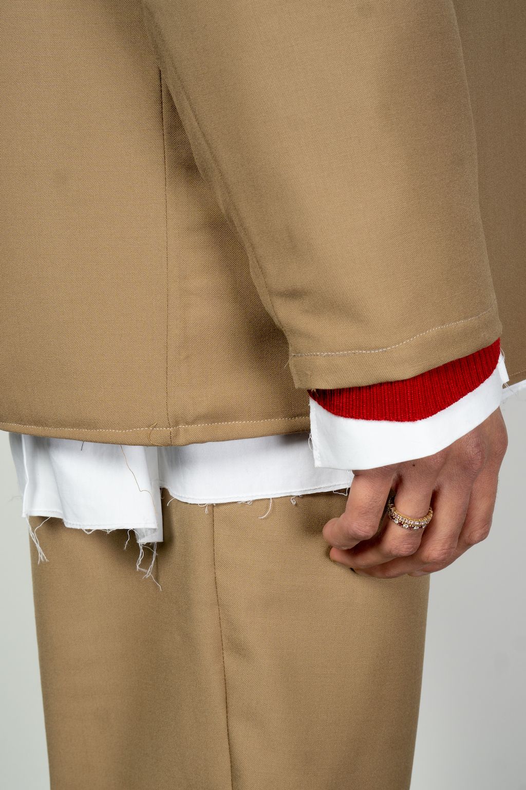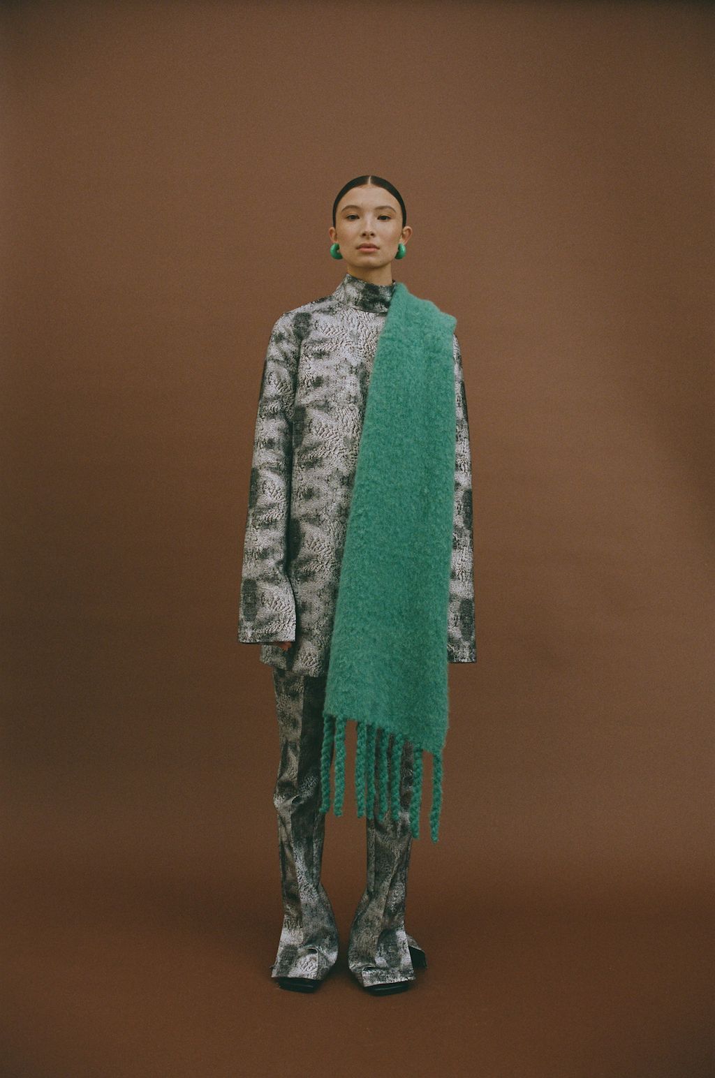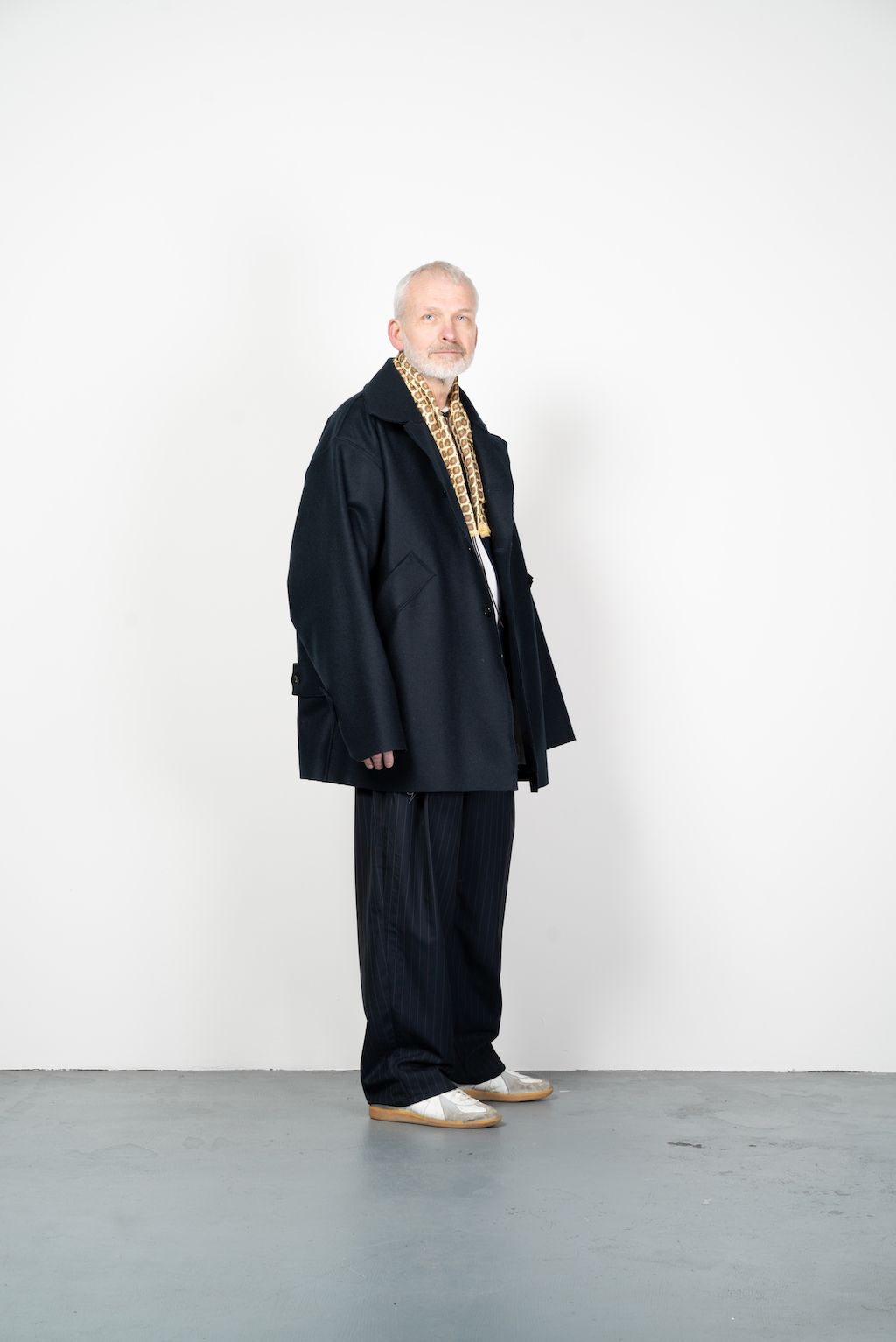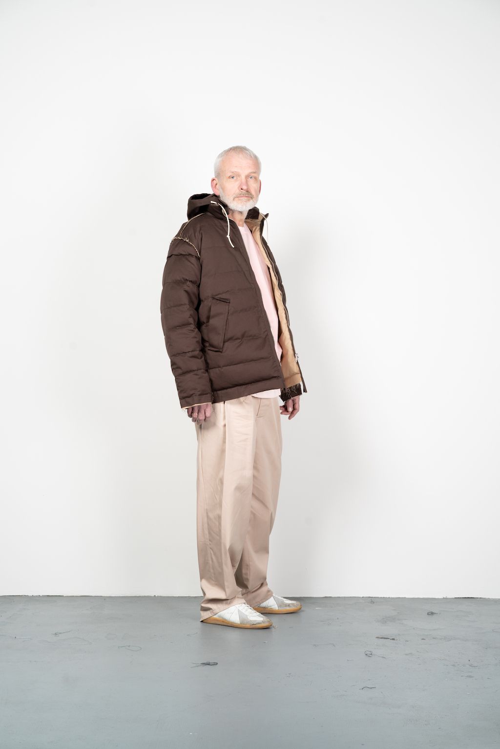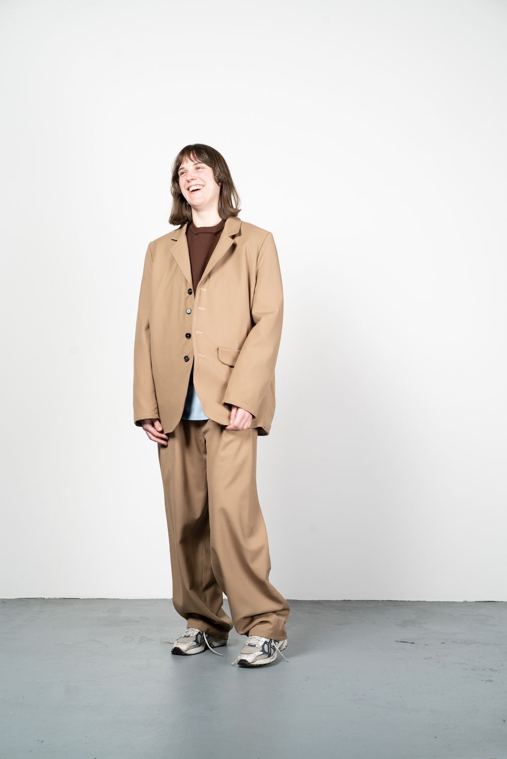Camiel Fortgens founded his eponymous brand in 2014 with the aim to challenge the fashion industry in its habit of selling a polished image. Unpolished are at least Camiel Fortgens’ hems - a true distinguishing feature of the brand. Overall, his campaigns and lookbooks signalise a realistic and authentic approach that is relatable to most people. Typical motifs of his work are an imperfect and reconstructed look sportily combined with Asics sneakers contrasting what most people would consider “normal”. To put it differently, the designer bridges the gap between avant-garde and classic tailoring with his unconventional approach. The garments are handmade in Europe and from the highest quality fabrics sourced in Europe and Japan. Camiel Fortgen’s active decision against going to a fashion school, but the Design Academy Eindhoven helped him to get an untarnished and impartial view on fashion design aside from all its conventions and rules that it usually brings with it. Foundational are the brand's core values of craftsmanship, outspokenness, accessabilty, timelessness and being unisex. For AW22 Camiel Fortgens created warming oversized basics with exposed seams and asymmetric hems. The colour palette relies on the shades of the additive colour mixing model - RGB - red, green and blue that are combined with a range of seasonal brown tones.