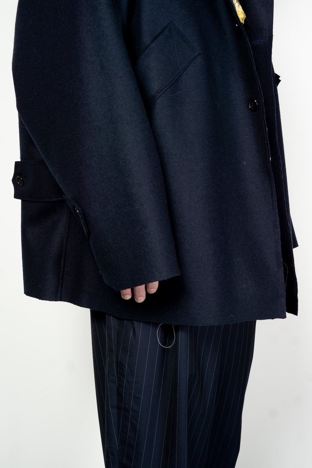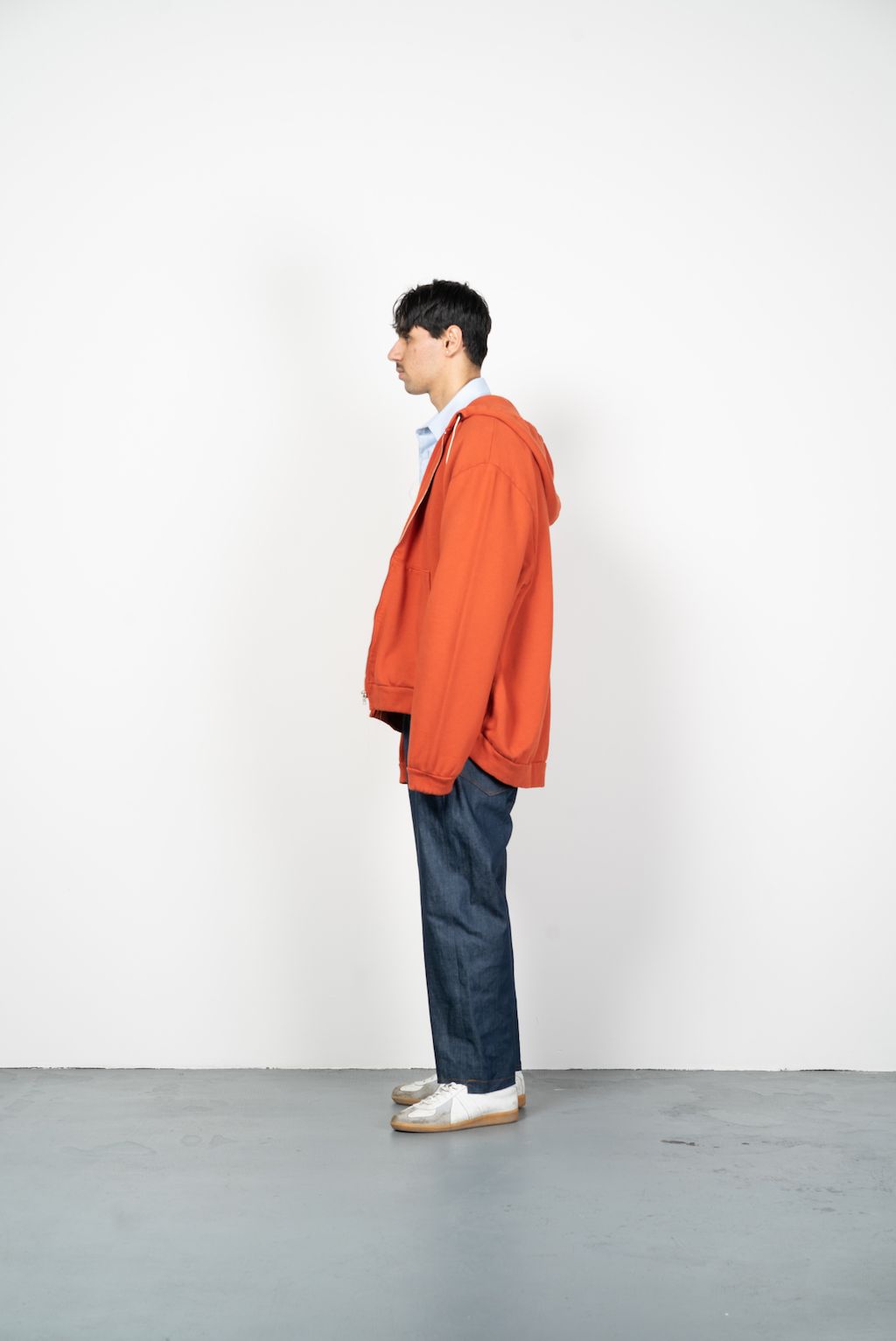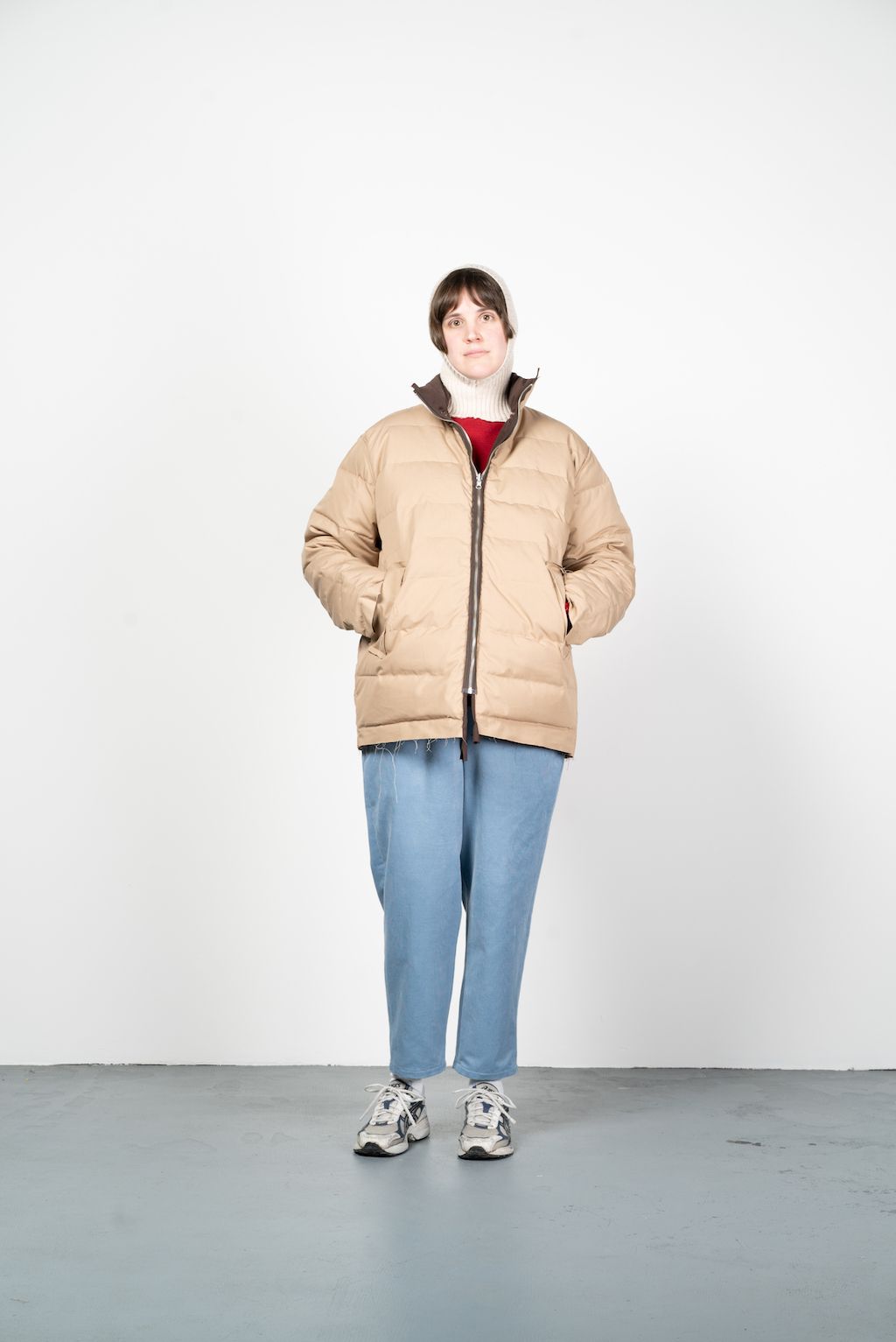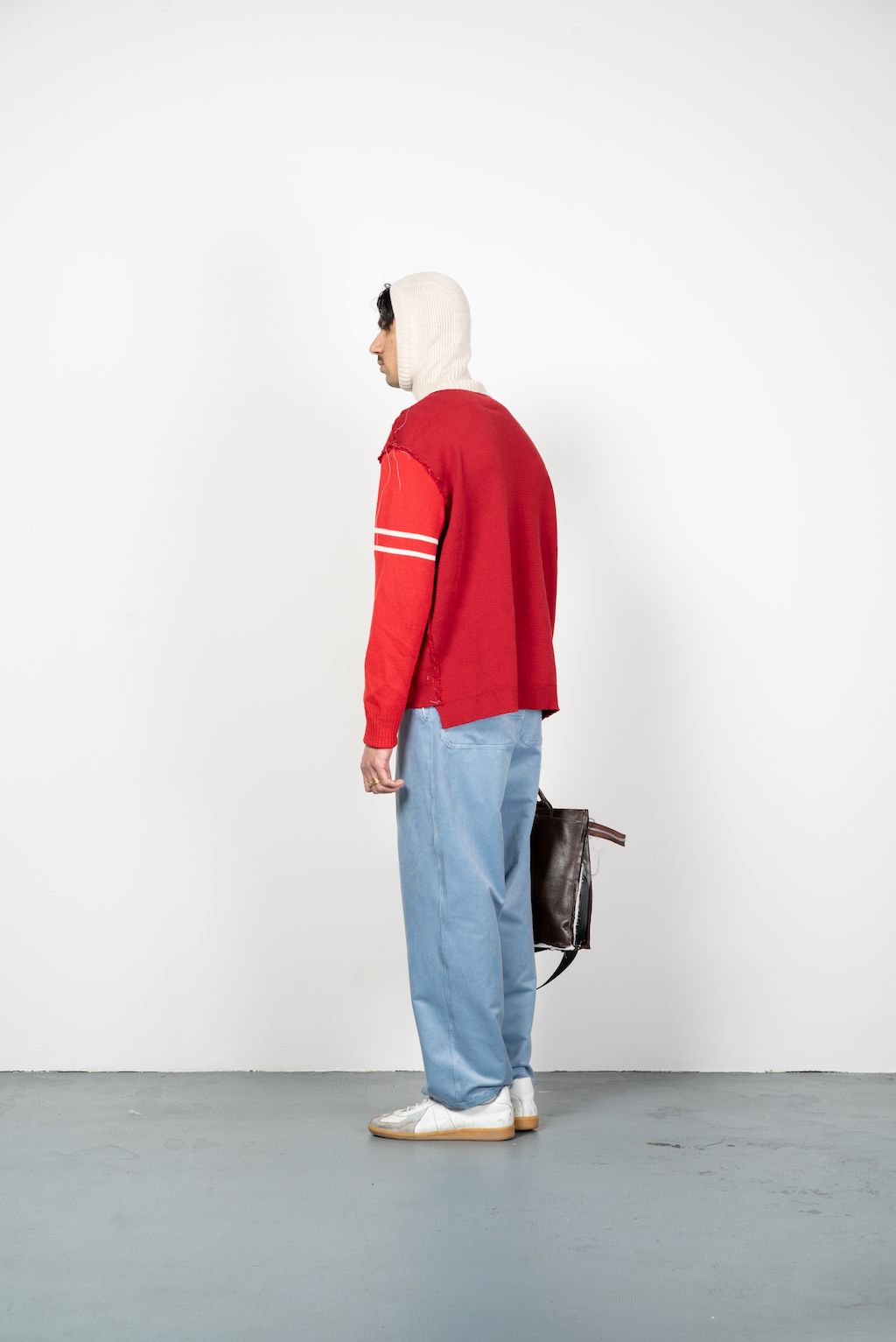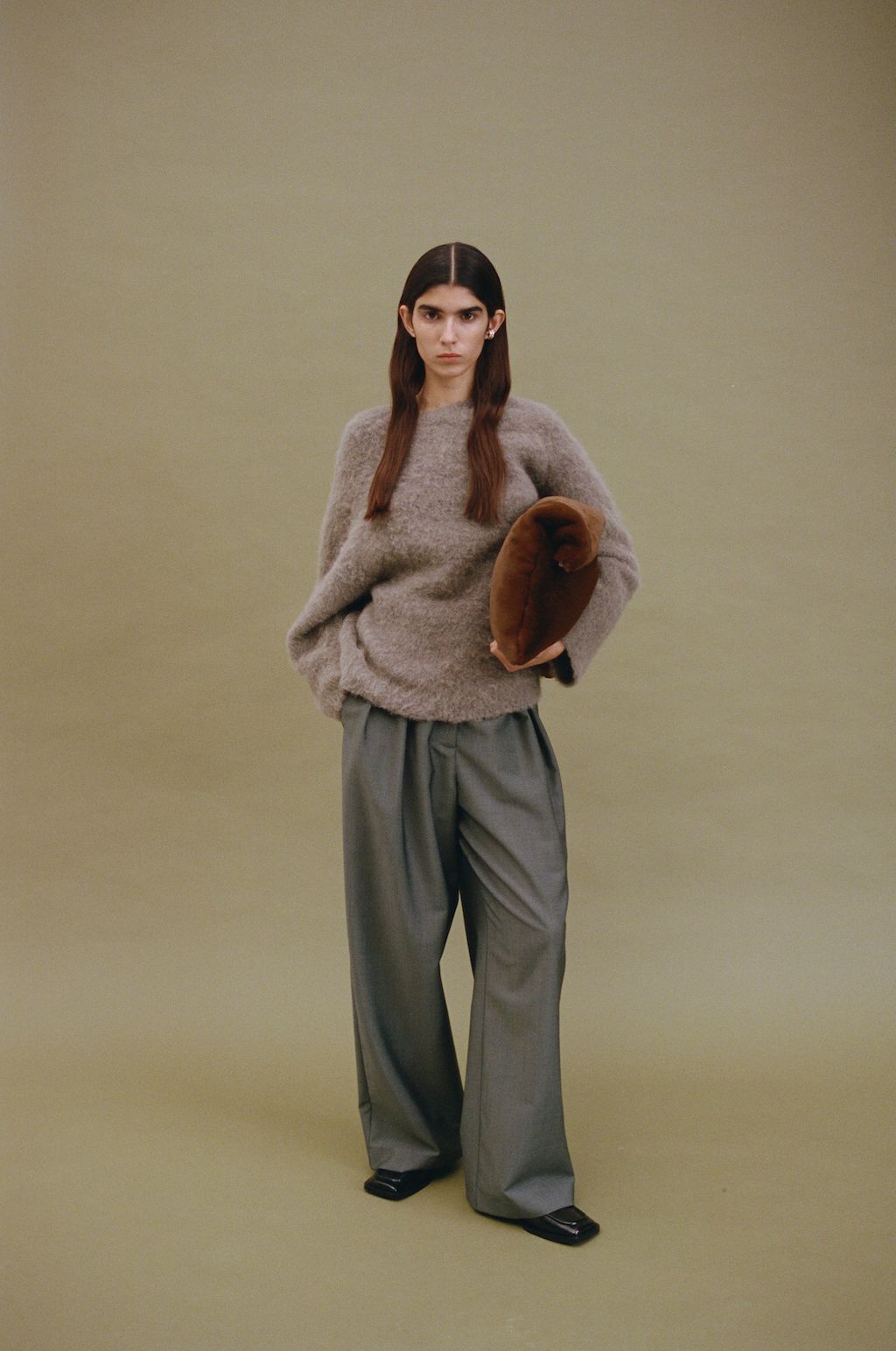Camiel Fortgens founded his eponymous brand in 2014 with the aim to challenge the fashion industry in its habit of selling a polished image. Unpolished are at least Camiel Fortgens’ hems - a true distinguishing feature of the brand. Overall, his campaigns and lookbooks signalise a realistic and authentic approach that is relatable to most people. Typical motifs of his work are an imperfect and reconstructed look sportily combined with Asics sneakers contrasting what most people would consider “normal”. To put it differently, the designer bridges the gap between avant-garde and classic tailoring with his unconventional approach. The garments are handmade in Europe and from the highest quality fabrics sourced in Europe and Japan. Camiel Fortgen’s active decision against going to a fashion school, but the Design Academy Eindhoven helped him to get an untarnished and impartial view on fashion design aside from all its conventions and rules that it usually brings with it. Foundational are the brand's core values of craftsmanship, outspokenness, accessabilty, timelessness and being unisex. For AW22 Camiel Fortgens created warming oversized basics with exposed seams and asymmetric hems. The colour palette relies on the shades of the additive colour mixing model - RGB - red, green and blue that are combined with a range of seasonal brown tones.