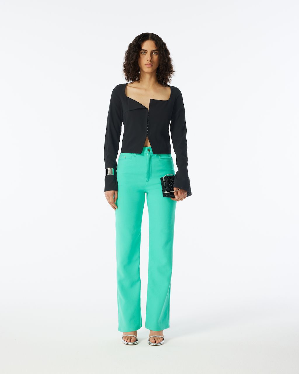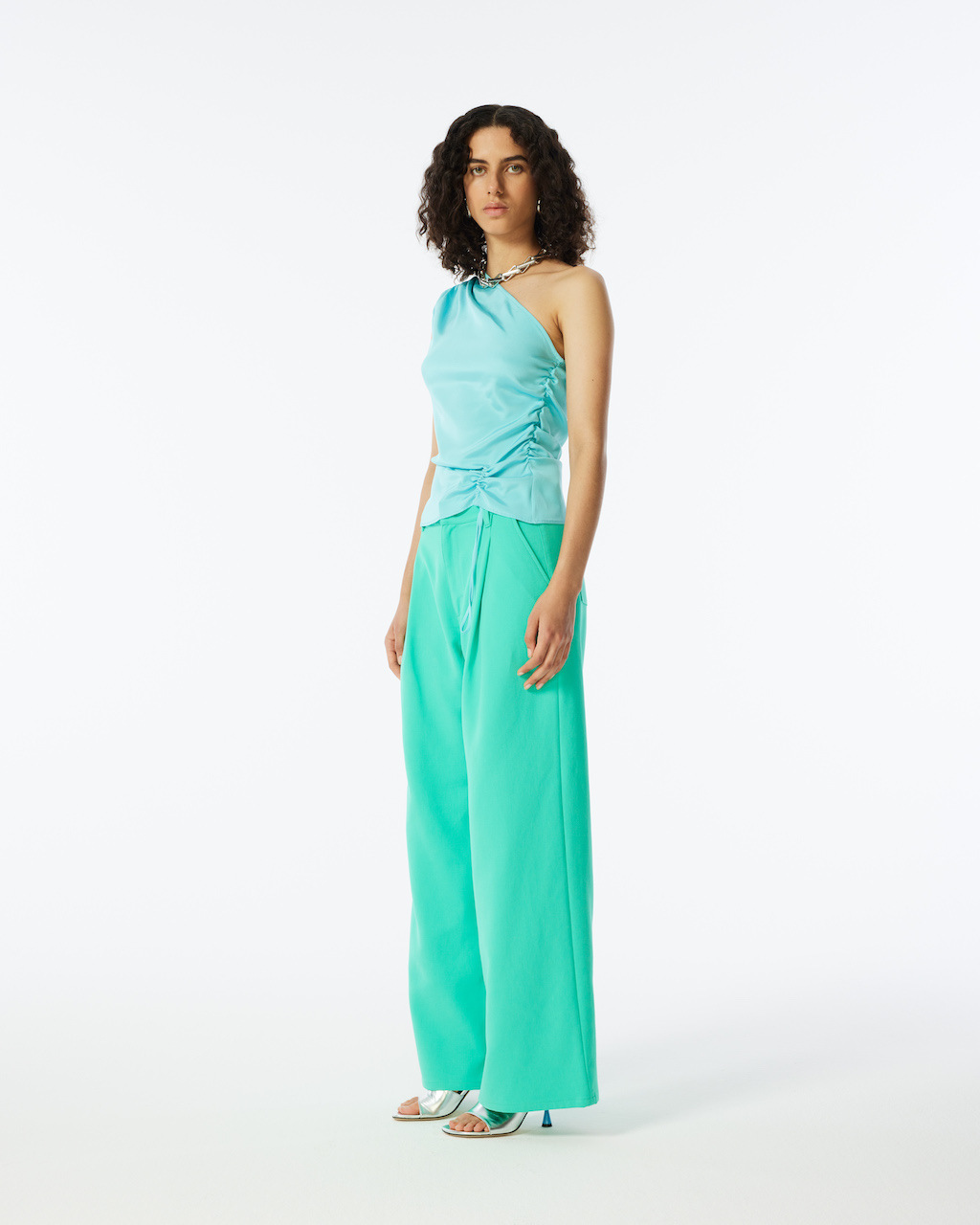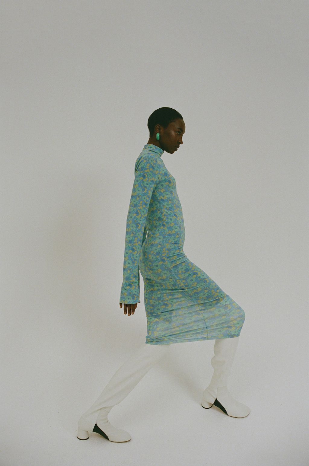 Asked how she would describe her own brand, Elza Wandler tells us that her designs are “architectural in shape, bold in colour and they are having a modern take on femininity”. Her success doesn't seem to fade, the designer just celebrated her 5th anniversary during Amsterdam Fashion Week with a rave inspired party in an artmuseum wrapped in apple green - the brand’s distinguishing feature. However, notime resting on laurels for busy Elza. During Paris Fashion Week, Elza presented her first ready-to-wear collection for SS23 in which she introduces dresses, skirts and tailoring in dynamic colours and silhouettes completing her personal wardrobe, but surely also a dream of hers. The brand’s first RTW collection draws inspiration from Boticelli’s Birth of Venus envisioning the ultimate muse dressed head to toe in Wandler. The mythological references can especially be seen in the names of the different styles such as the Clio Long Shirt or the Olympia Dress.