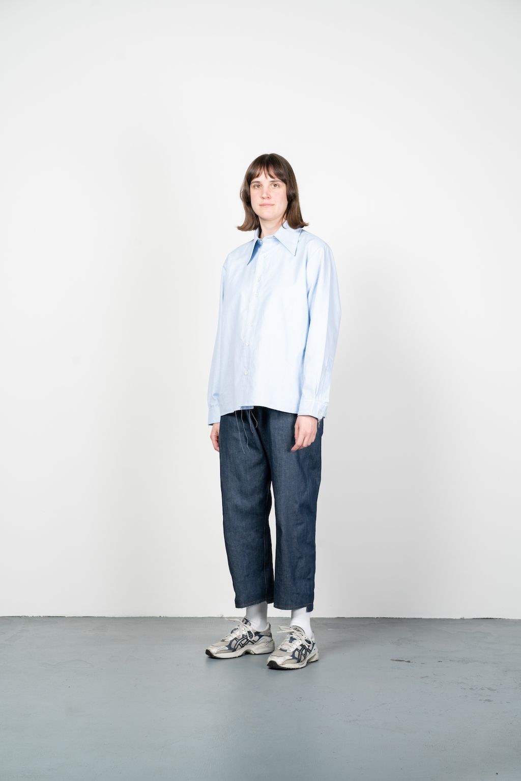 Founded in 2021, the brand embraces clean, puristic and purposeful designs that transcend seasons. Photography, architecture and modern art can be considered Marieke’s main sources of inspiration when it comes to design. Not only the designs aim for a long time use of the garment, it is also the fabrication just like the materials used. 90% of clothing is made in Europe avoiding long and Co2-emission-loaded supply chains. Moreover, the denim collection consists of over 75% recycled cotton. Lastly, the brand is also characterised by its multidisciplinary spirit by continuously giving a range of artists a canvas for collaborations. For their AW22 presentation Fransje Gimbrère created textile sculpturesexploring the dialog between fashion crafmanship and art.