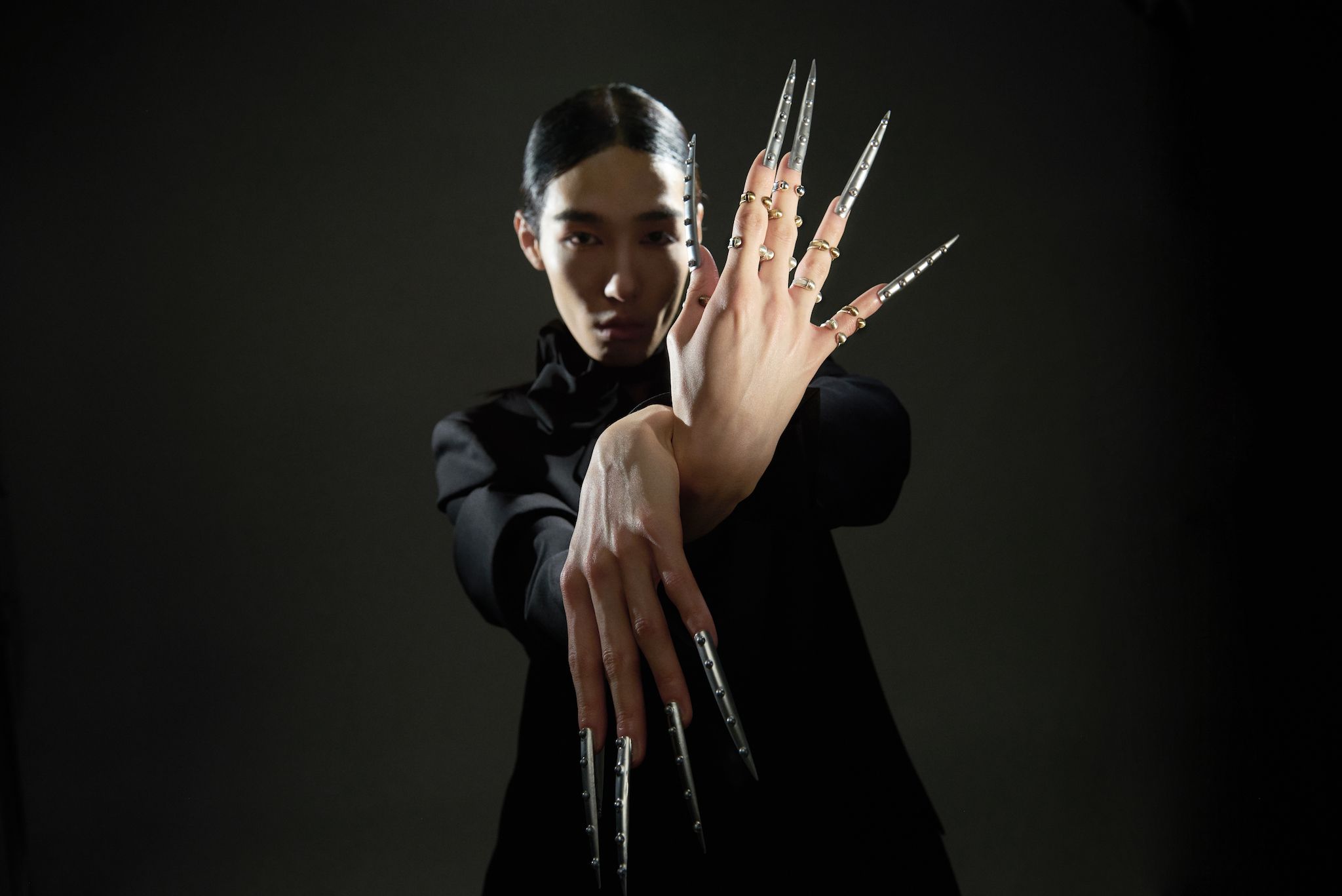BULLSEYE elaborates on two minimal forms: the svelte diamond, and the rounded silver bullet. These shapes reappear across your fingers, collar, and lobes – mechanic yet elevated, conveying strength and simple luxury. “For this collection, I based my designs on modular entities that could be adapted to different styles” explains GDF’s founder Karl Yazigi. Yet as these two original shapes multiply across the collection, they metamorphosize into a series of technically complex designs that are GDF’s hallmark.