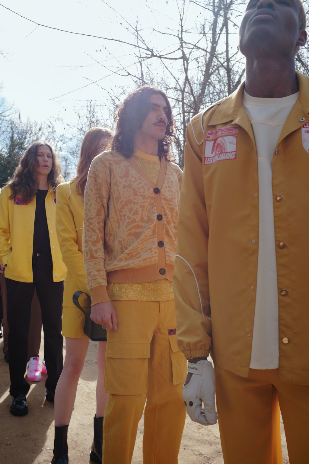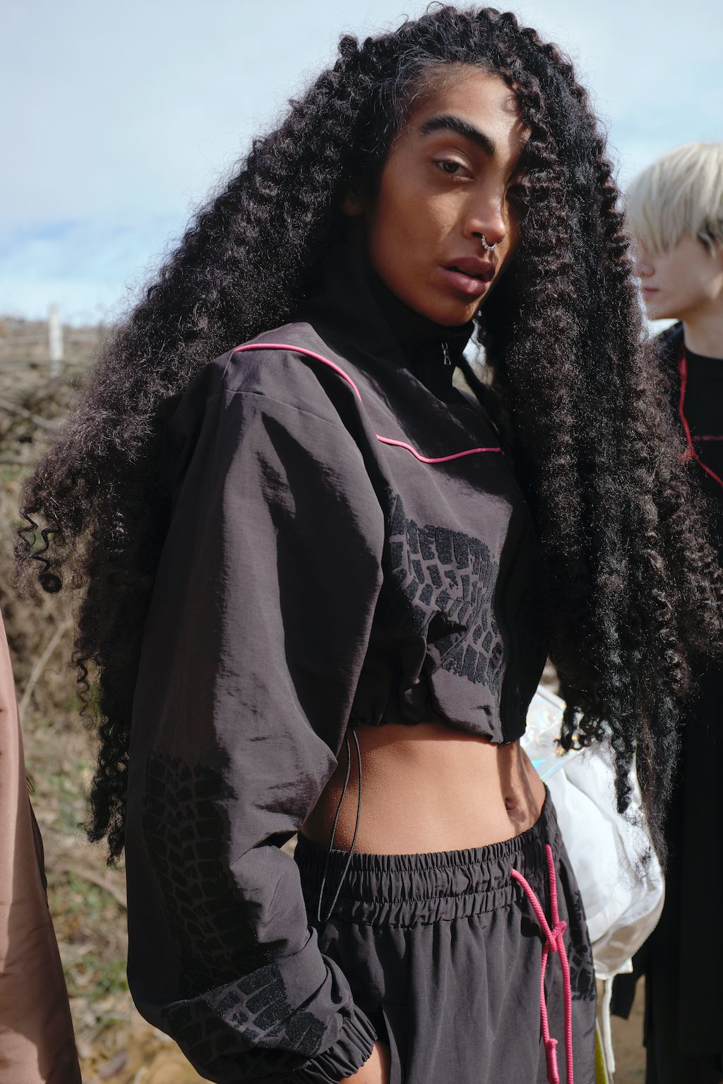 Juxtaposition is key this season, which is why vintage racing uniforms are reinterpreted with a sharp street culture twist. The track clothes mimic the actual rally in its boldness and stark contrasts: while going through this Fall Winter 2021 collection, one can perfectly imagine how heavily-modded cars emblazoned with bright sponsor logos engage in off-track racing punctuated by jaw-dropping, wild landscapes and occasional wrecks.