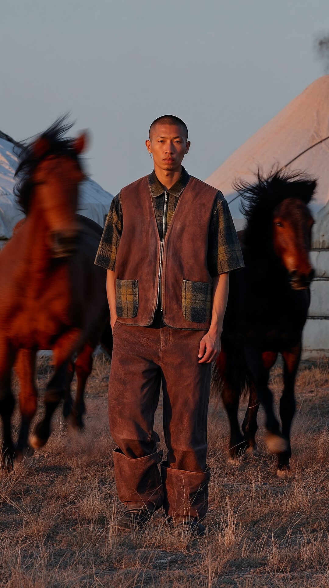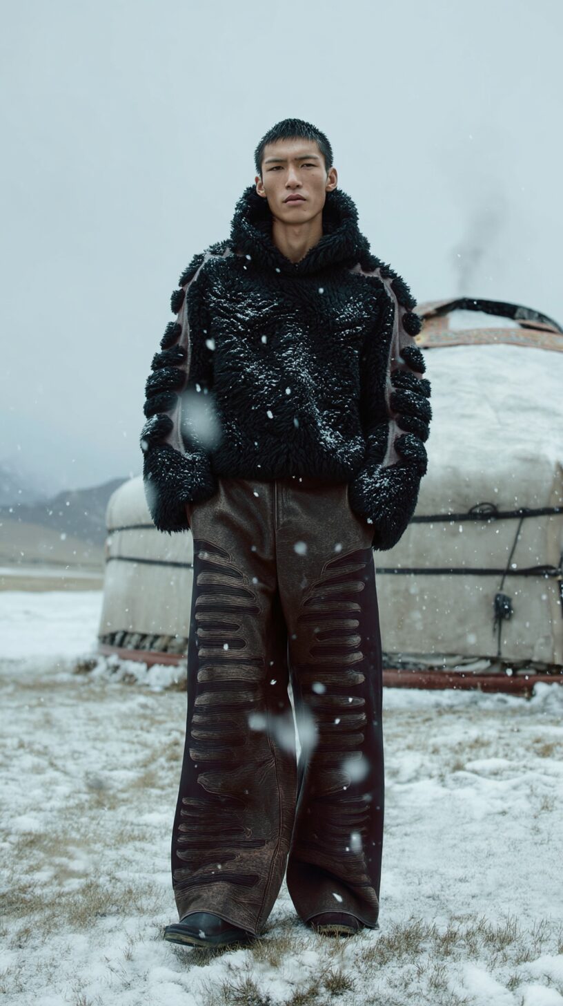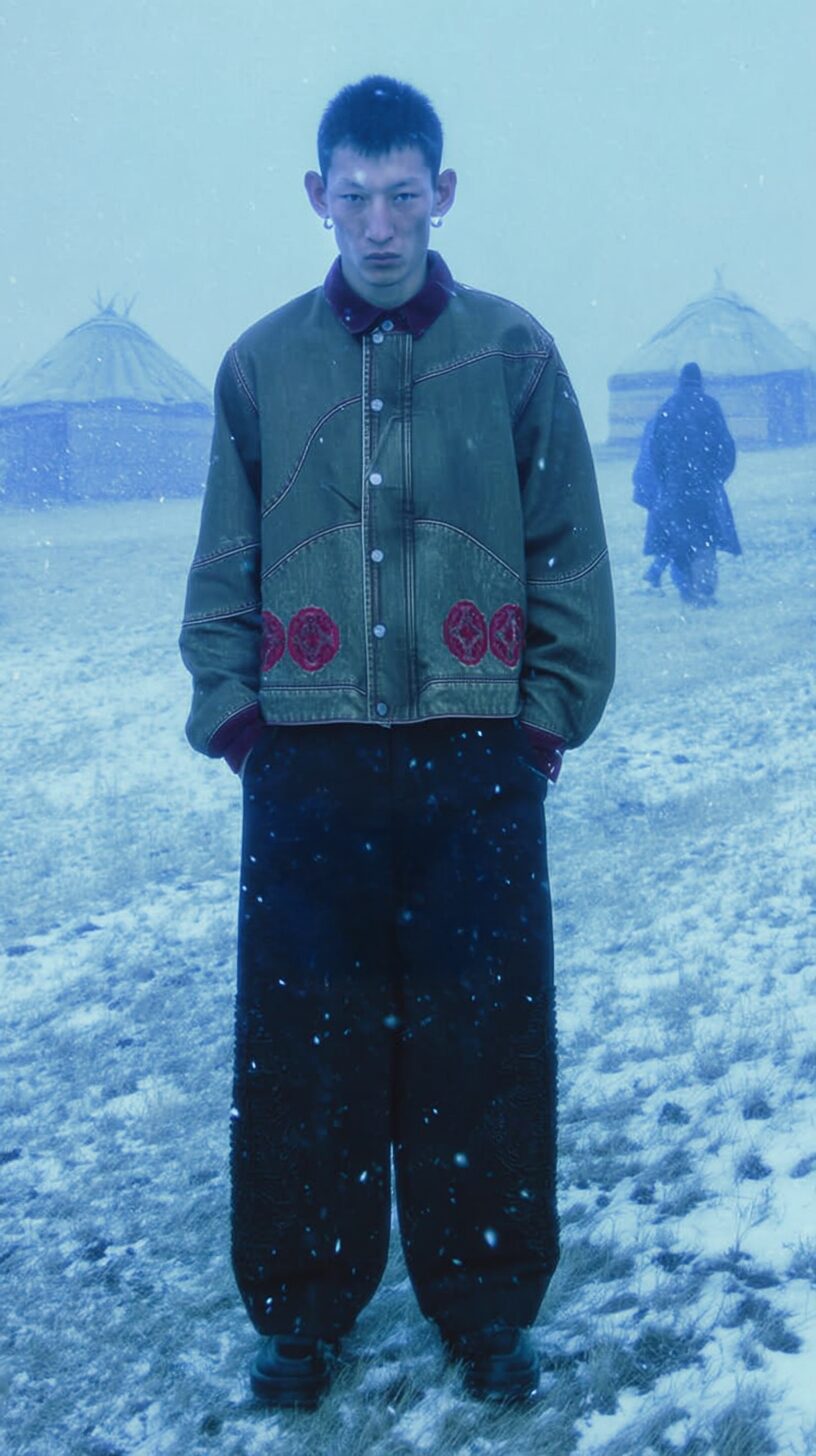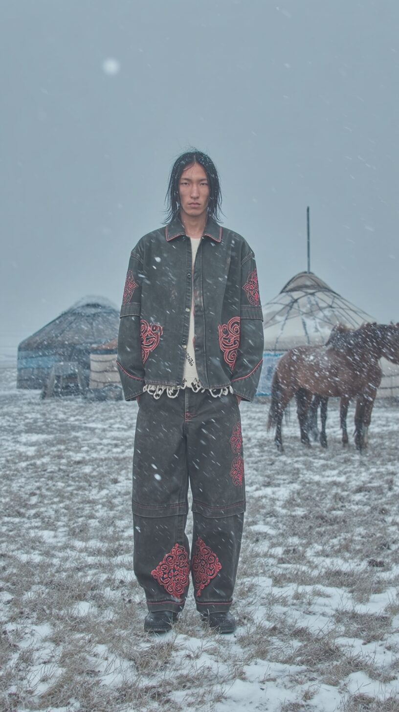 Les Benjamins presents its FW25 collection, Altaicana, marking another bold step in its mission to merge cultural narratives with contemporary design. The collection embraces the concept of “Altai Awakening”, exploring the shared roots of Turkic, Mongolic, Korean, and Japanese traditions. Built on Aydın’s philosophy that “nature is not our inheritance from our ancestors, but a loan from our children”, Altaicana emphasizes the delicate balance between preserving ancestral stories and pushing forward progressive design. The collection draws inspiration from the Altai people’s deep connection to mythology and the natural world, blending these elements with Americana influences to create a visual dialogue that is both global and deeply rooted in tradition.