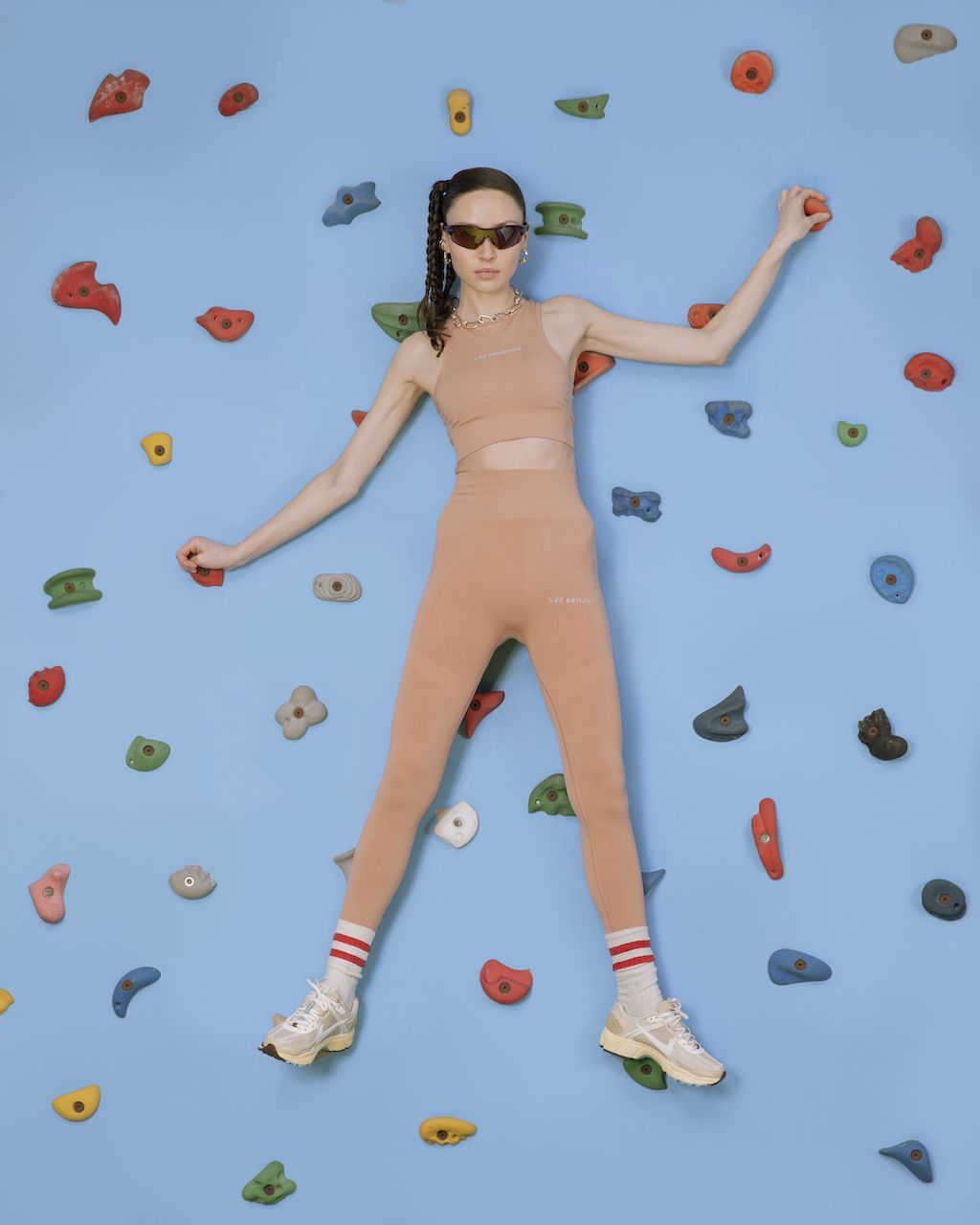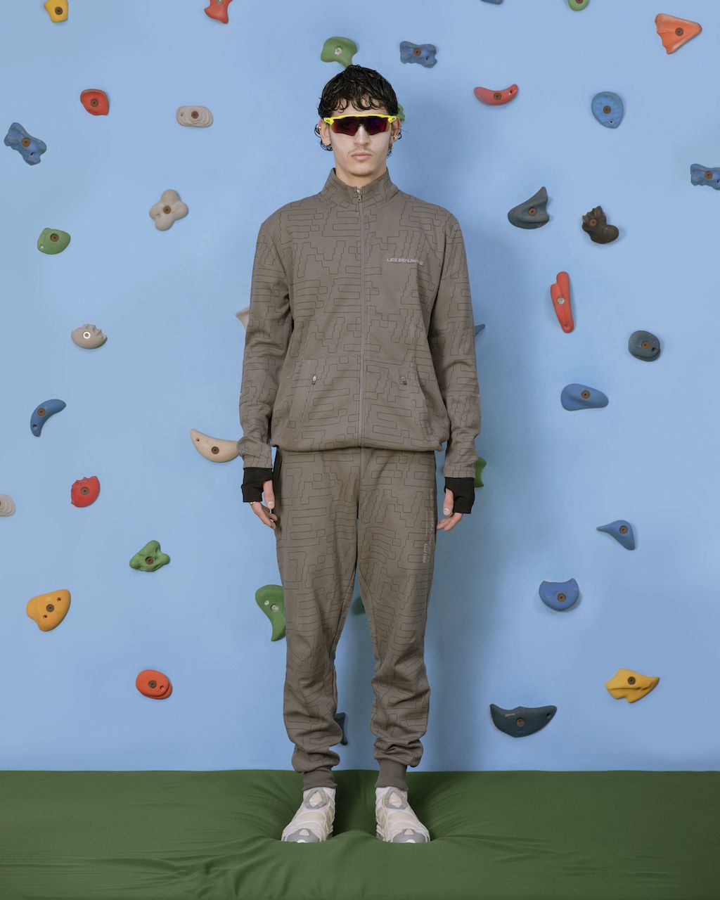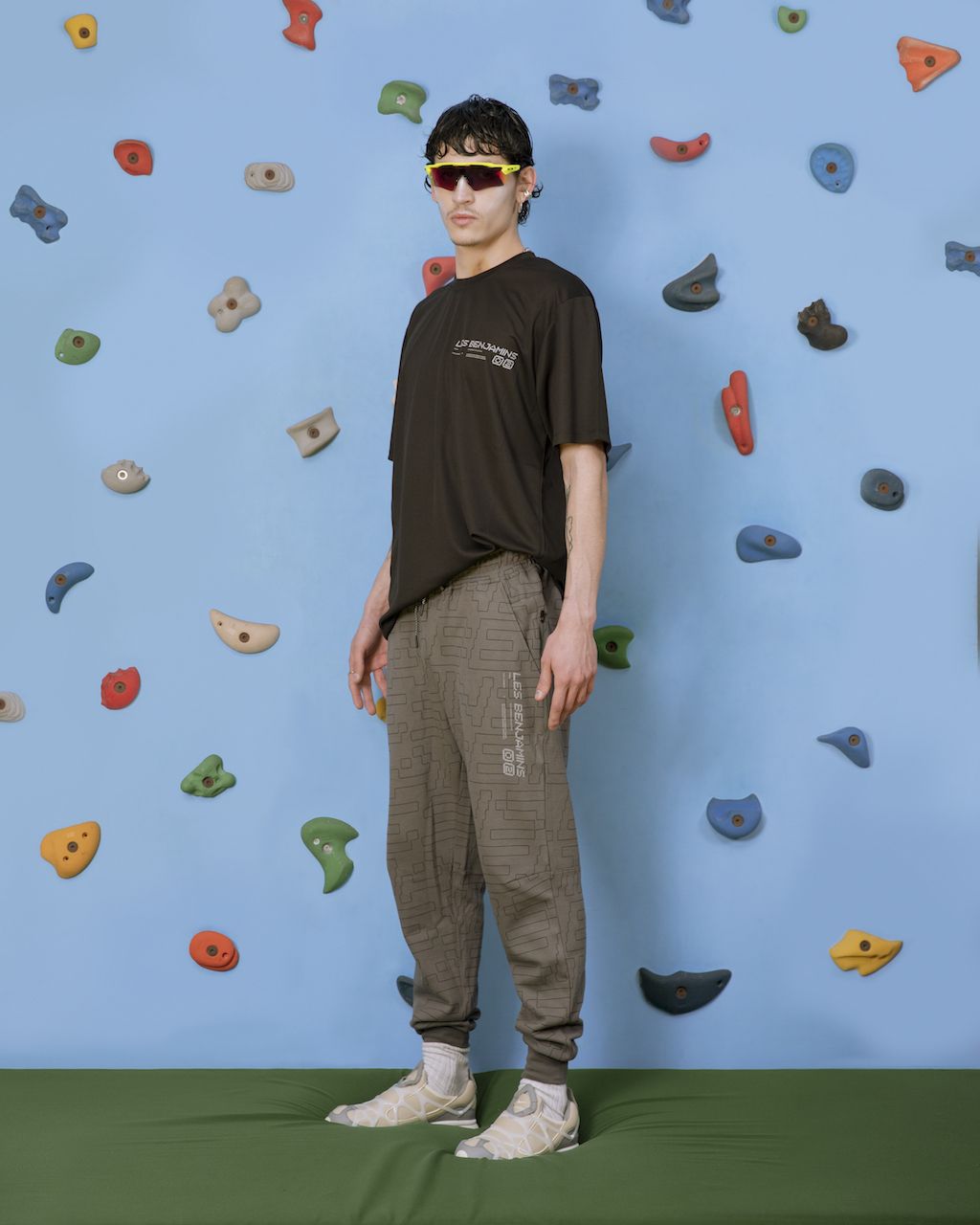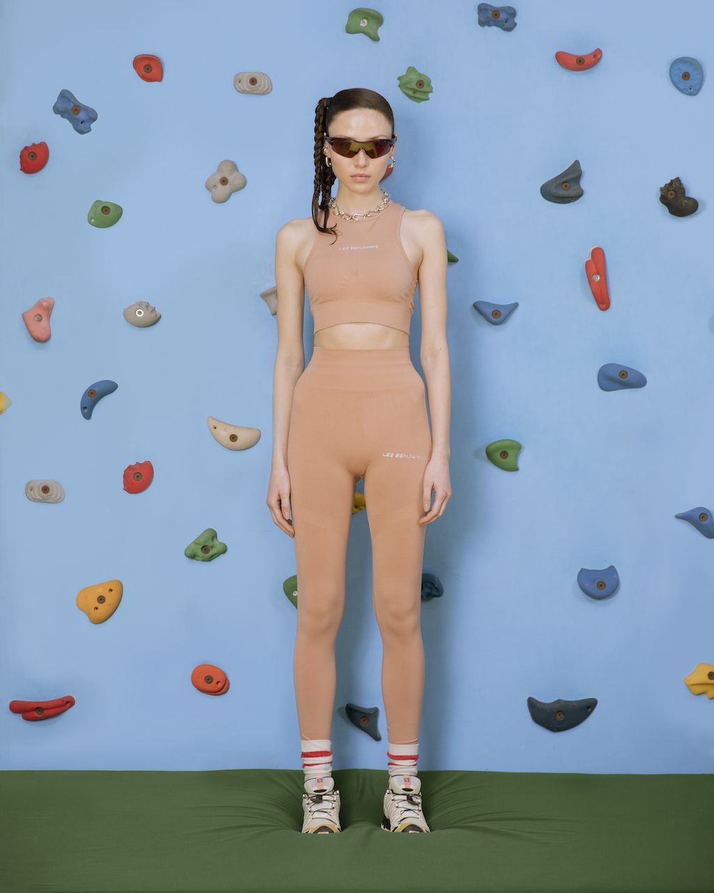 For womenswear, the brand presents leggings cycling shorts, racerback tank tops, and long-sleeved work-out tops with gentle references to the iconic ear of the early ‘00s with really dynamic silhouettes and outstanding designs. For menswear they bring slouchier streetwear cuts for track pants, matching zip-up track tops, running shorts, and short-sleeve t-shirts–each of them emblazoned with the Les Benjamins logo.