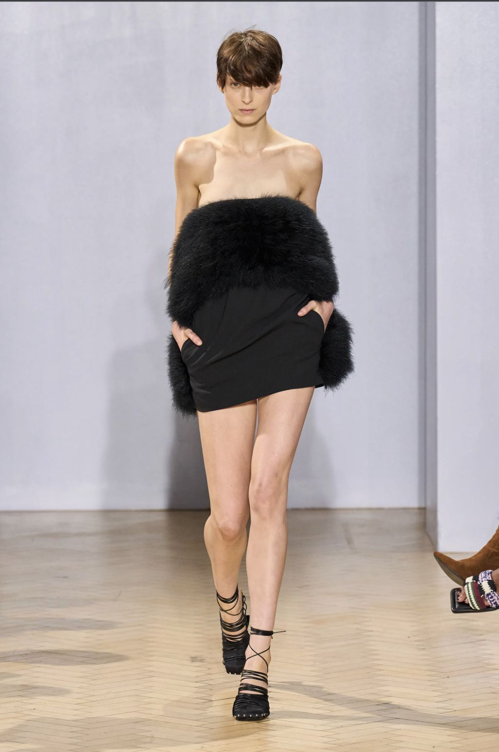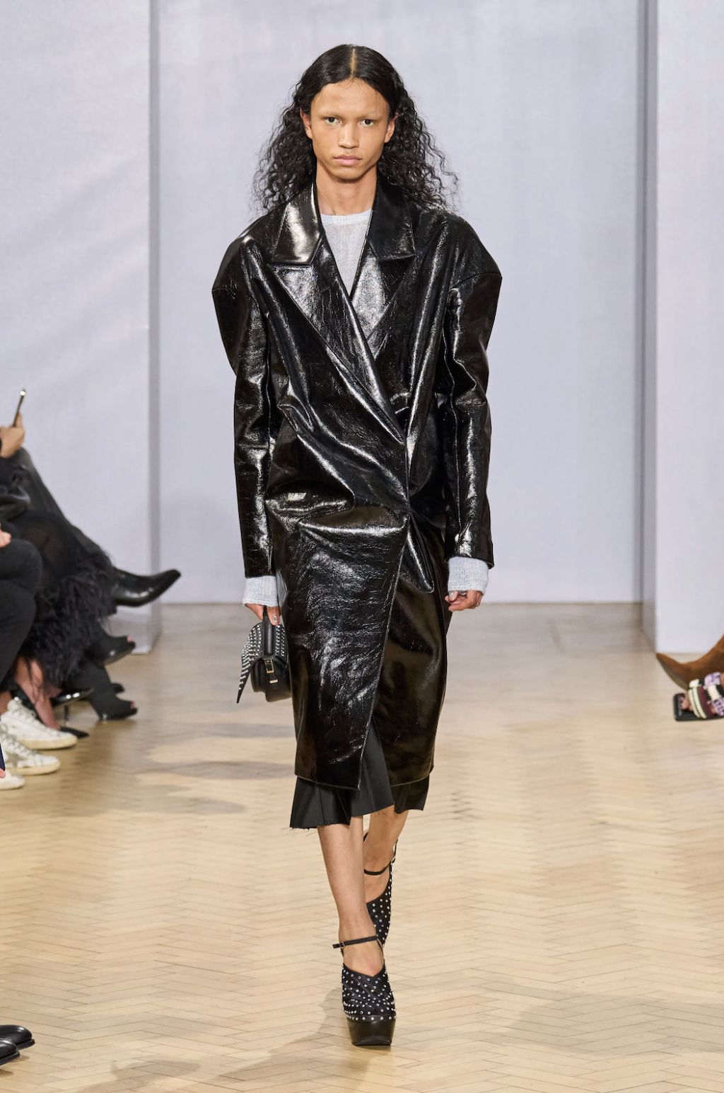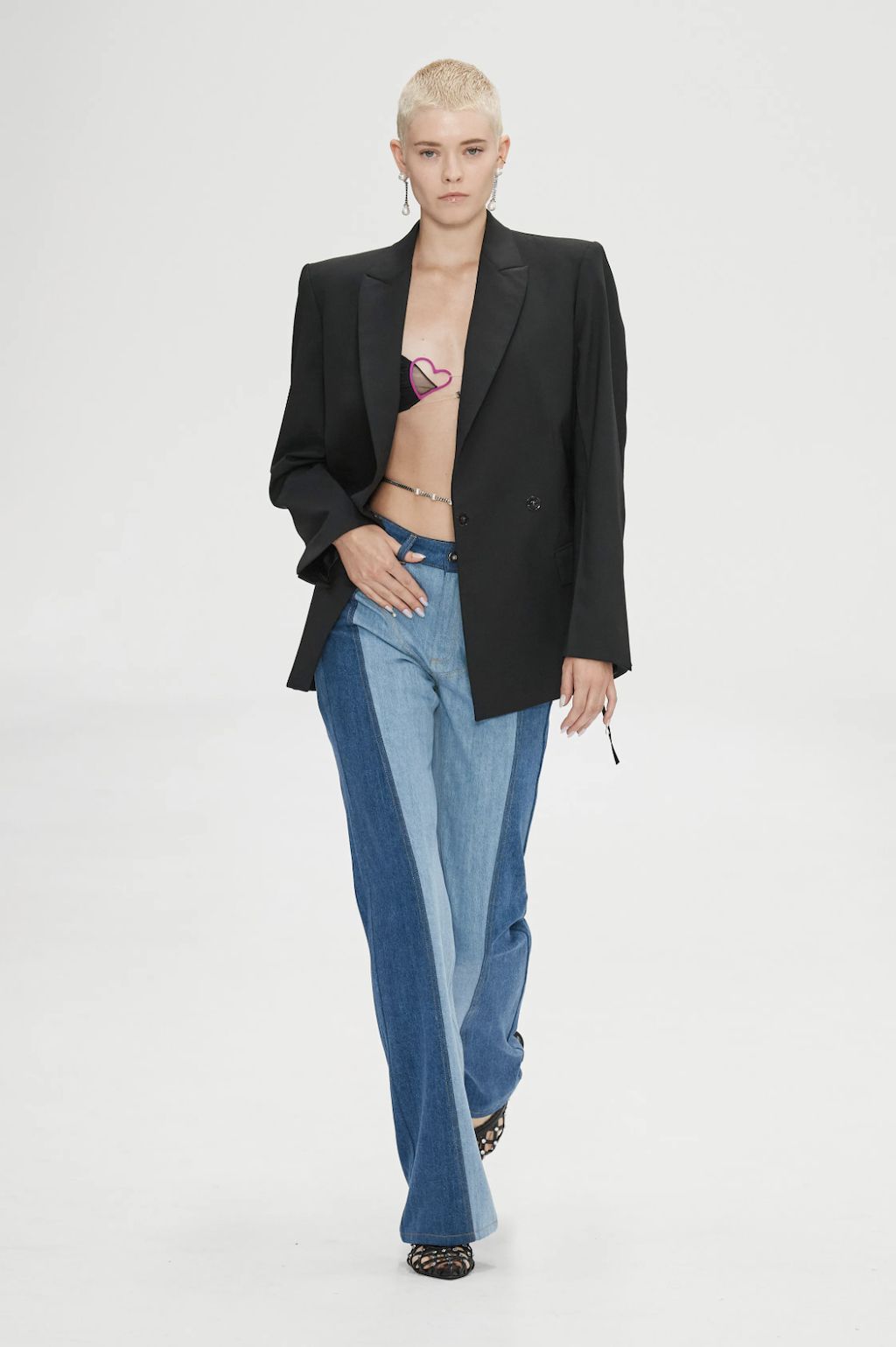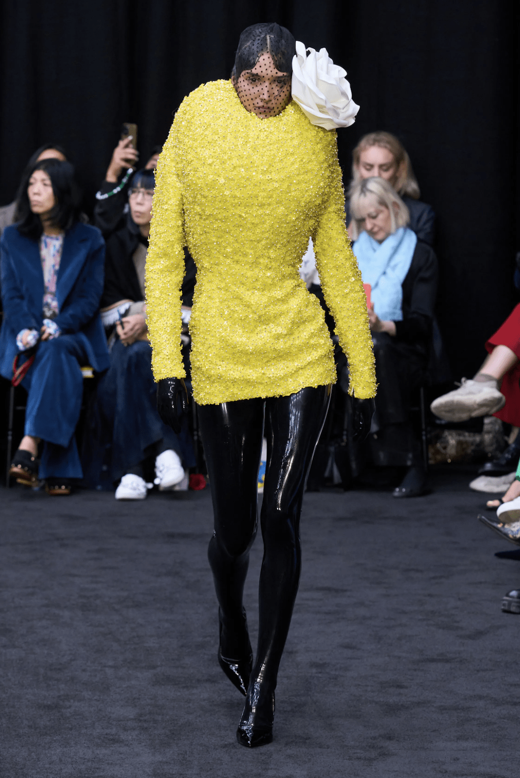 → Back on the London fashion week schedule with a bang, Scottish fashion designer Christopher Kane riffed on some of his own past collections for Spring/Summer 2023. Highlights included subversive twinsets, lingerie, floral stickers, skeleton-like PVC-straps, and crystal chainmail. Science, nature and the human body were cited as inspirations, and there were anatomical cross-section drawings (symbolic of power and strength) of hands, arms, and legs to decorate dresses looking like minimalist nurse and physician uniforms. Sexy dresses were everywhere in London, from bodycon to lingerie-inspired. Kane’s were some of the best in show - think clear vinyl body straps with inset lace bra cups. He also had a cozy dose of oversized knitwear and wowzer cutaway Chelsea boots, because sometimes, we just wanna get dressed and feel cool without having to think about it.