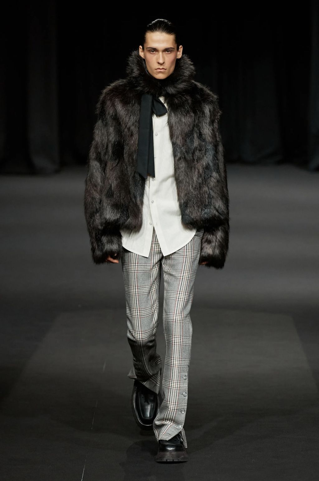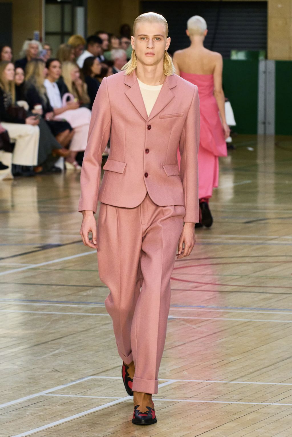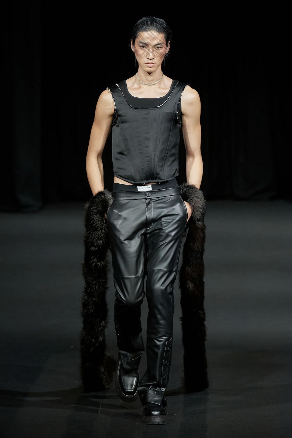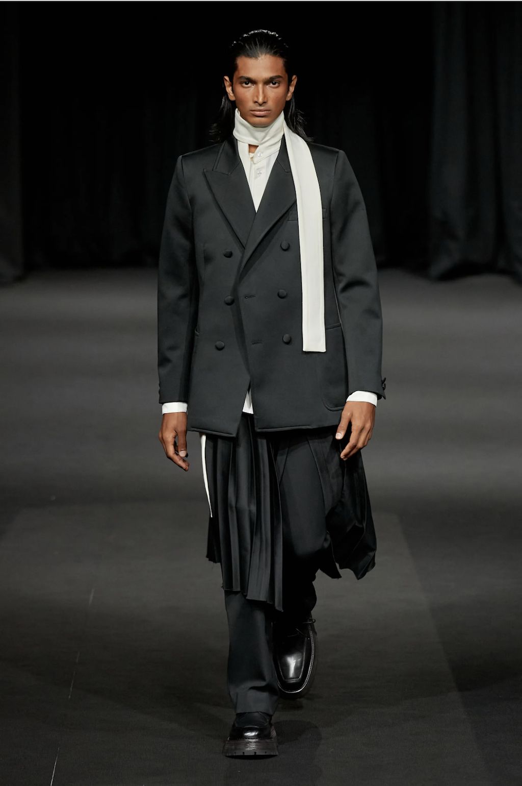 → Following a one-minute silence opening his show with a solemn tribute to Her Majesty the Queen, Daniel W. Fletcher paid homage to figures past and present who have made London their home - from King’s Road punks to Savile Row tailors. But also the initially very dark designs are reminiscent of the mourning for Elizabeth II.’s passing, especially the all-black morning suit worn with an armband to tribute to the Queen, opening his Spring/Summer 2023 show. Ever since Netflix’s hit series “Next in Fashion”, we have appreciated his skills. His craftsmanship is truly exceptional. No question the tailoring-focused SS23-collection referenced past and present silhouettes by mixing corsets and pyjama shirts with classic suiting. This was Fletcher’s most sustainable collection to date, working with deadstock fabrics through Nona Source, which sources waste fabrics from LVMH to repurpose elsewhere. A big yes from us!