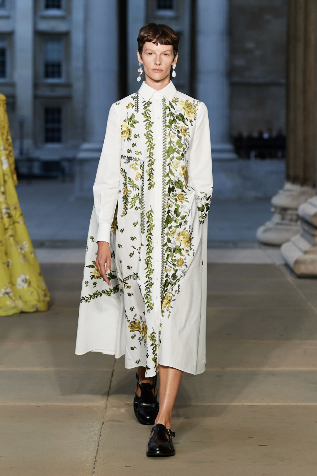 → Even from far away, you could already see the long queue at the British Museum. Once to be distinguished from the tourists to fashion folks attending the Erdem Show, the show guests took out their favourite pieces designed by Creative Director Erdem Moralıoğlu. Together with his studio team, the designer spent time with restoration experts at the British Museum, Tate, V&A and National Gallery. And that is exactly what this collection is about. Erdem’s latest creations explored the theme of the skill and dedication of art restoration. His Spring/Summer 2023 collection was based on the behind-the-scenes work of museum conservators exploring the undone, the stages of reconstruction created surprising details such as frayed hems, unexpected forms that came from studying understructures, and gowns created using fragments of different fabrics seen in the museums. Erdem Moralıoğlu’s SS23 collection examines the space between care and obsession in the pursuit of preservation. He also dedicated his Spring/Summer 2023 show to Her Majesty the Queen.