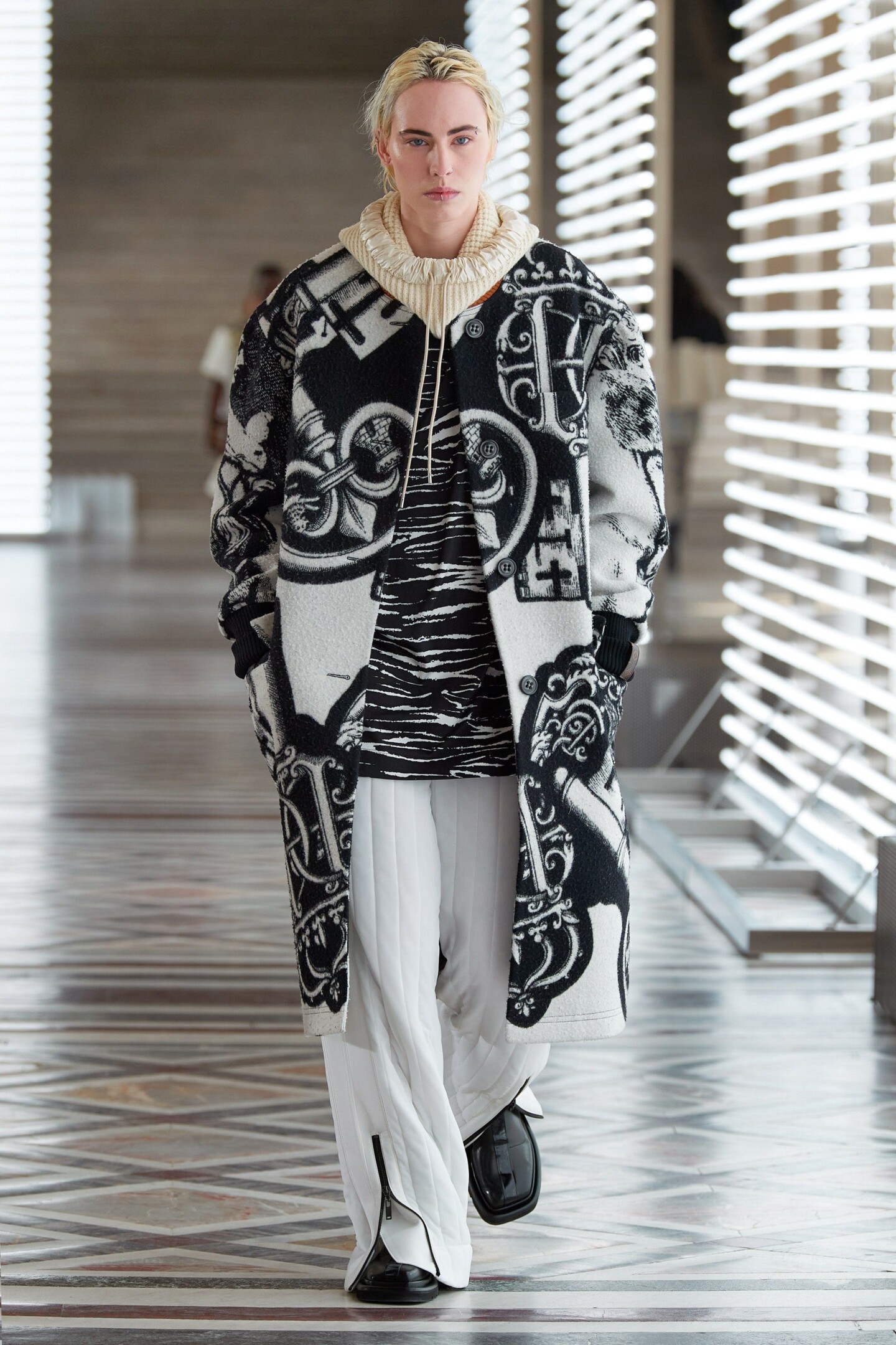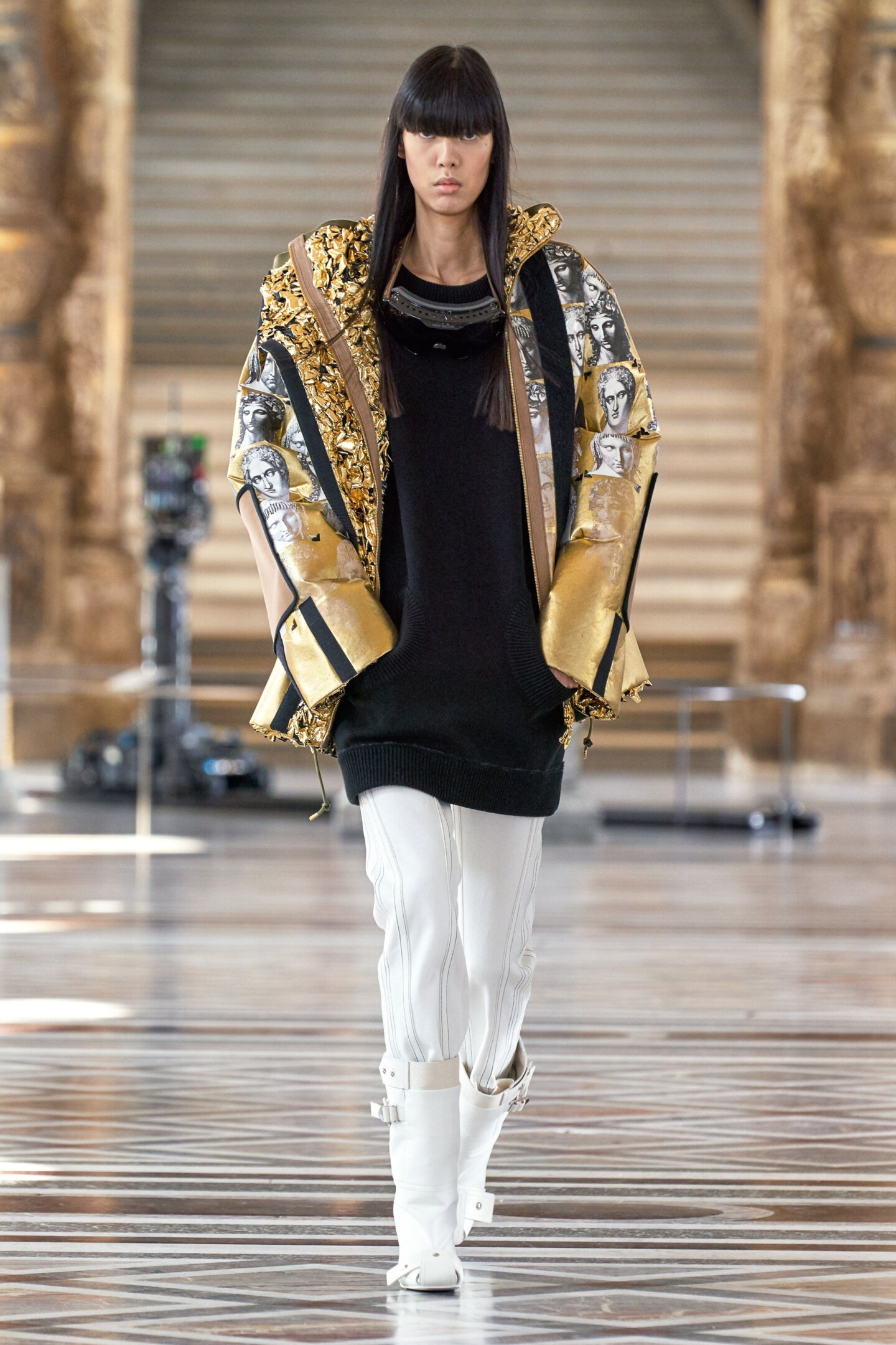 The show took place at the Louvre’s Denon wing and the models walked among sculptures from the classical world to the beat of Daft Punk’s hit “Around the World.”