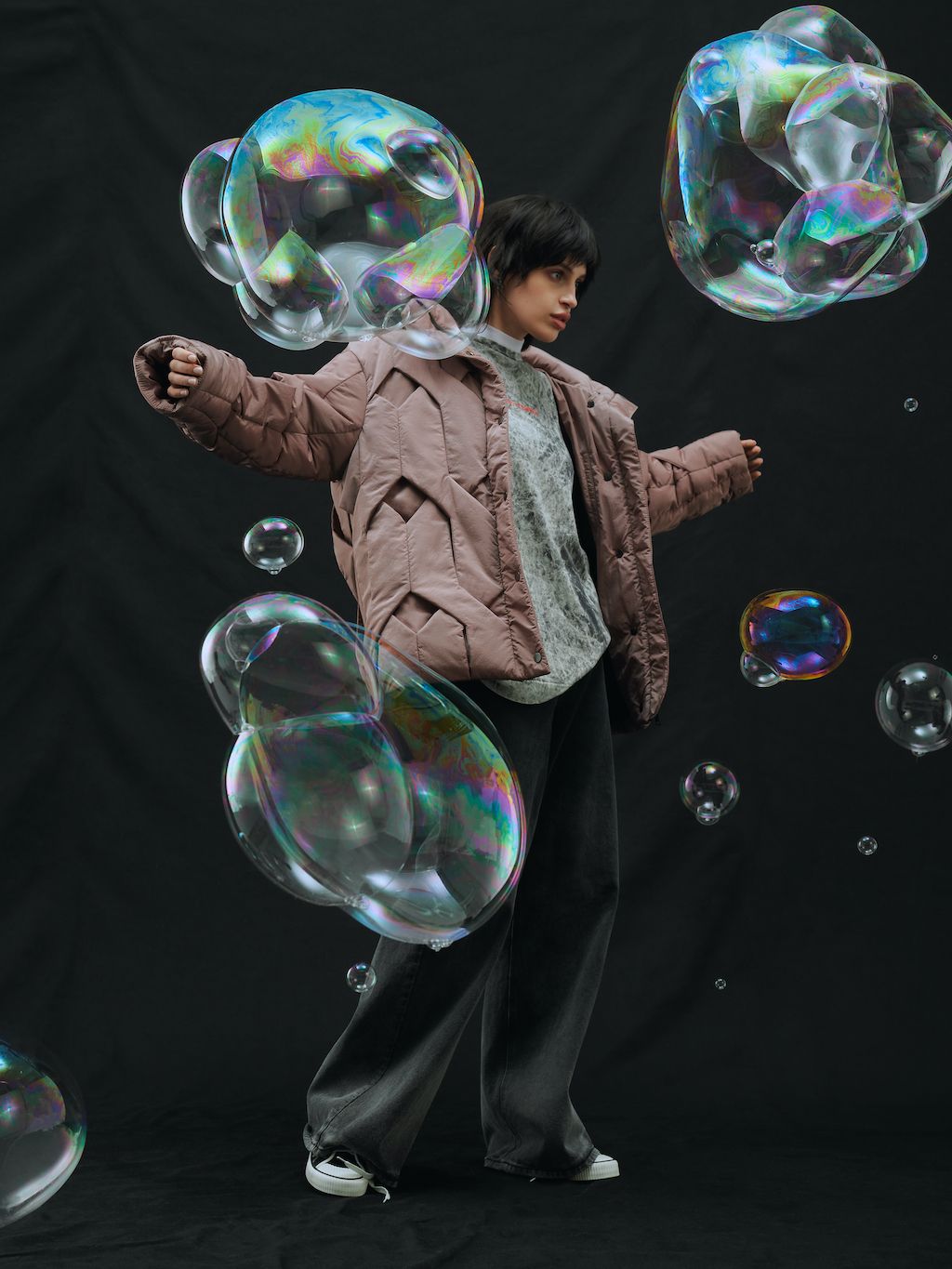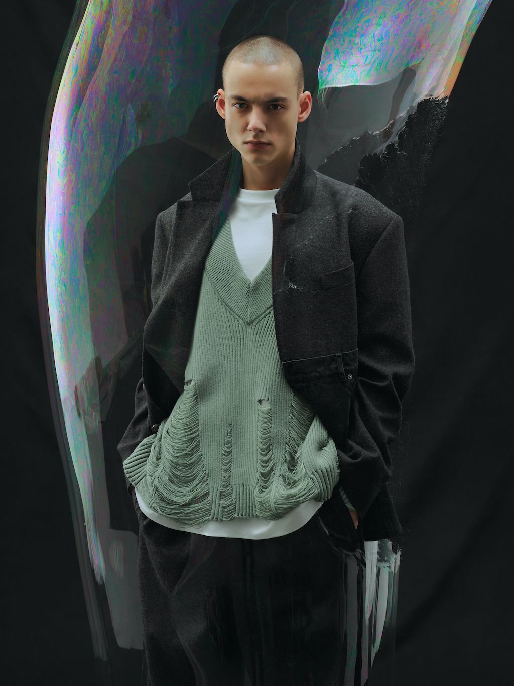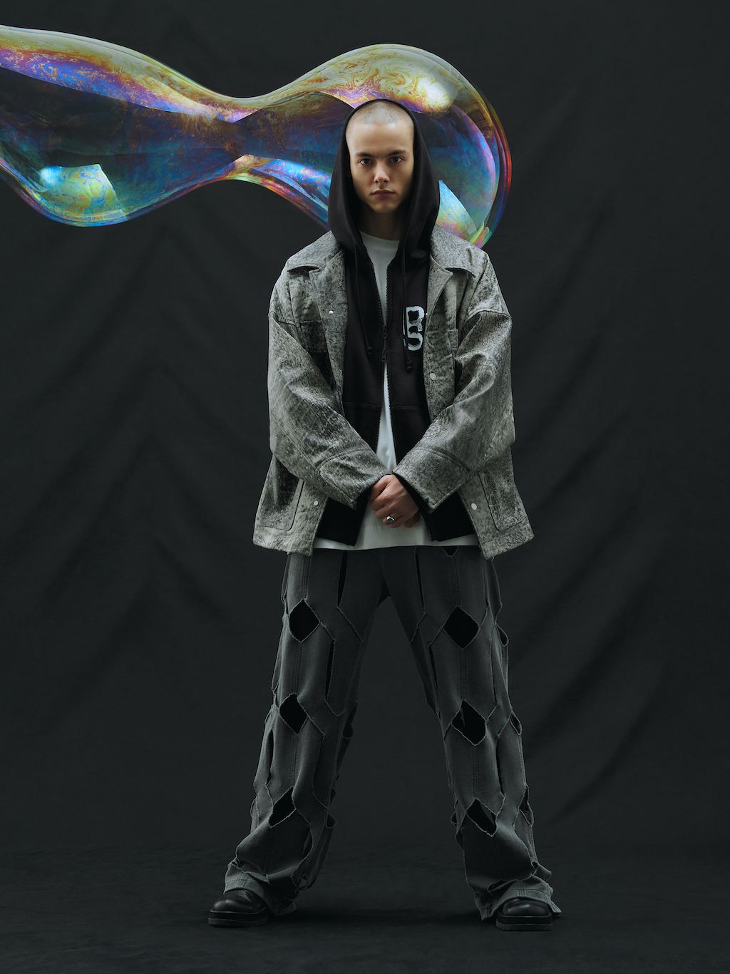 The brand, which works out as gender-fluid and creates its communication language by reimagining the cultural-symbolic code, brings a collection that reflects on the feelings of emptiness experienced by everyone in 2022. At that moment it felt like there was no oxygen, and all relationships and close ties were shattered, replacing the feeling of community with a bubble phenomenon.