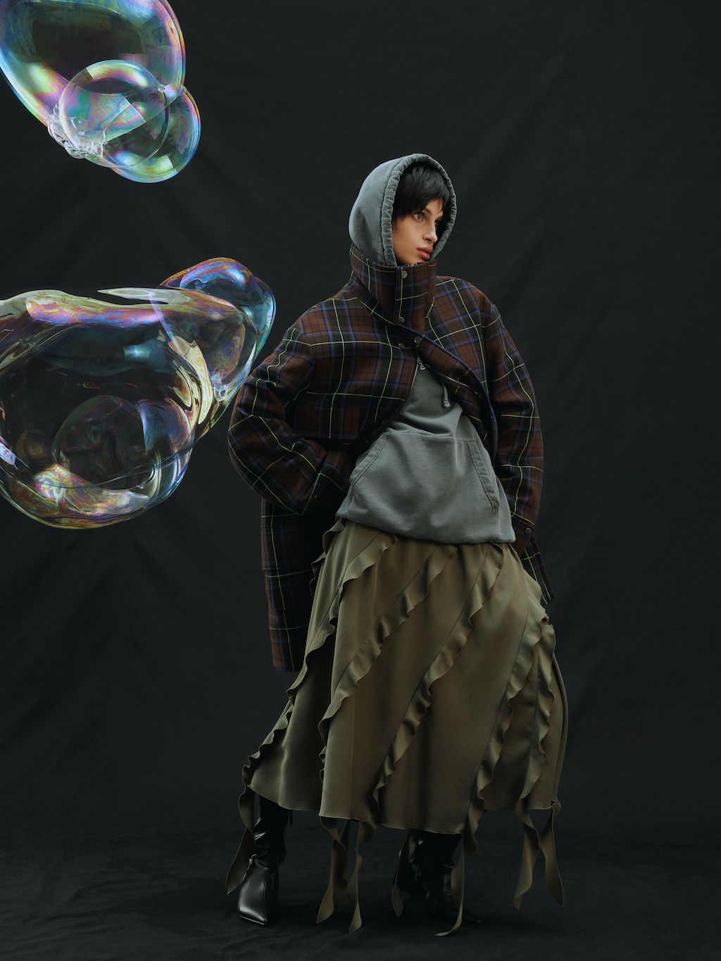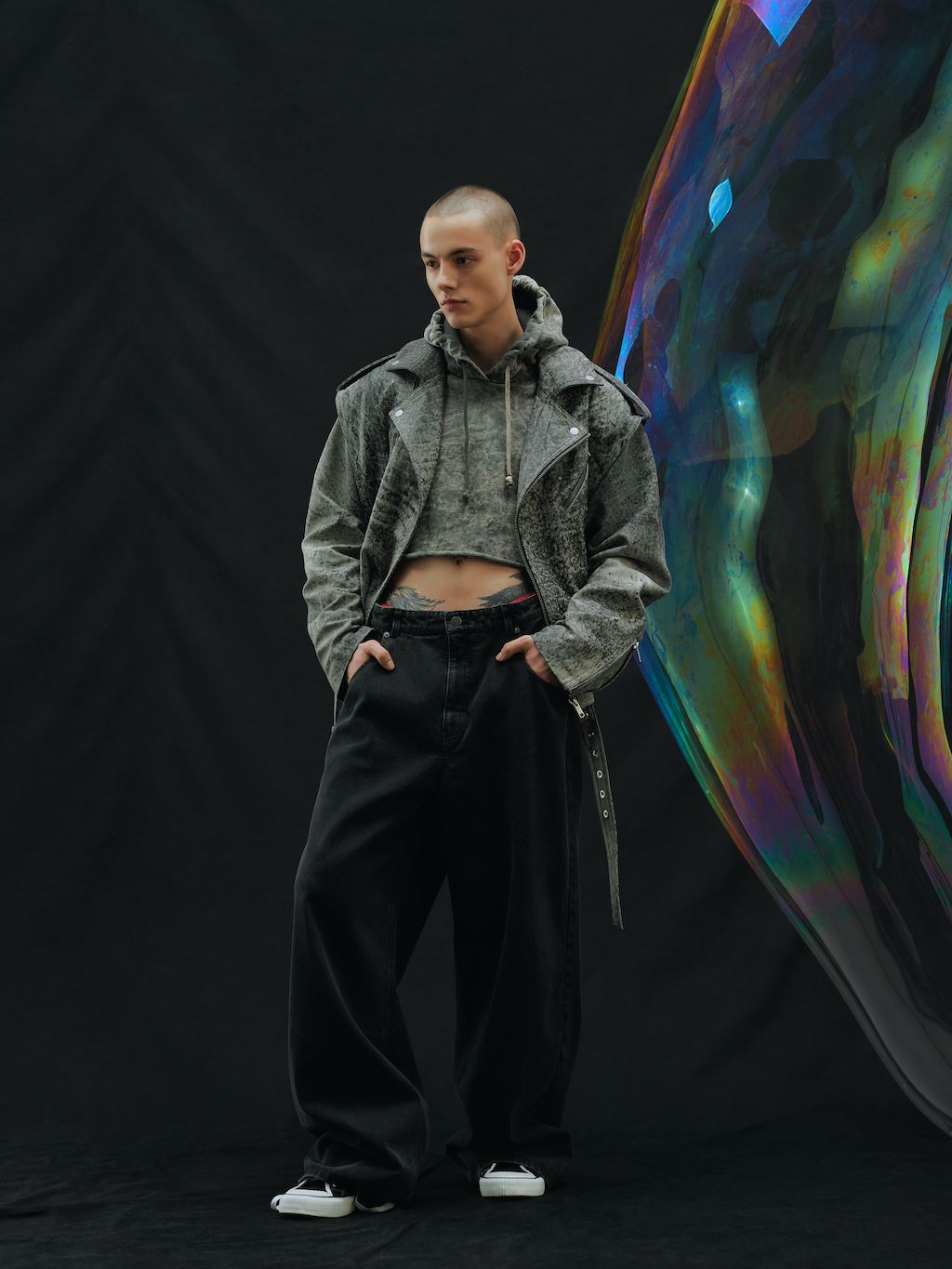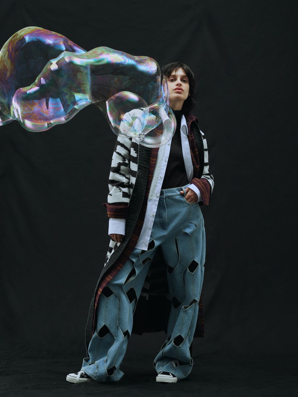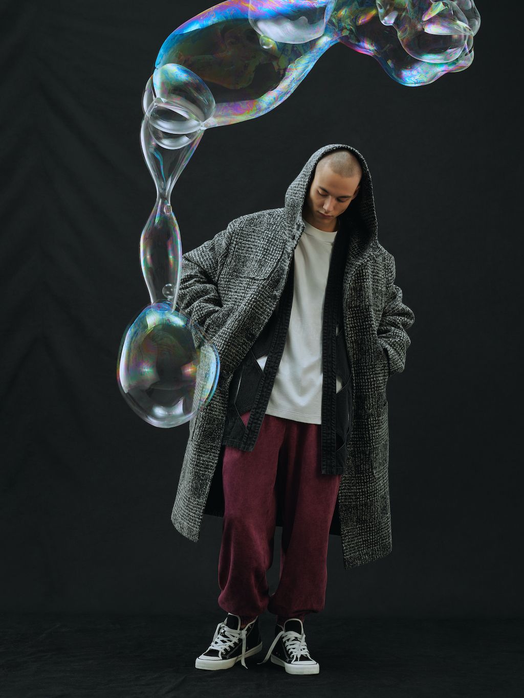 The brand, which works out as gender-fluid and creates its communication language by reimagining the cultural-symbolic code, brings a collection that reflects on the feelings of emptiness experienced by everyone in 2022. At that moment it felt like there was no oxygen, and all relationships and close ties were shattered, replacing the feeling of community with a bubble phenomenon.