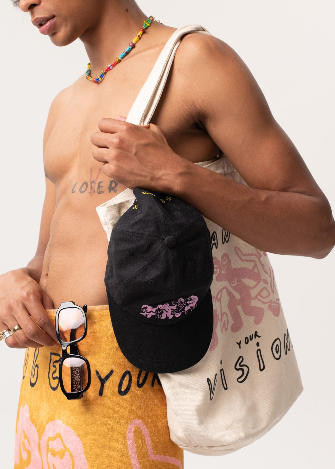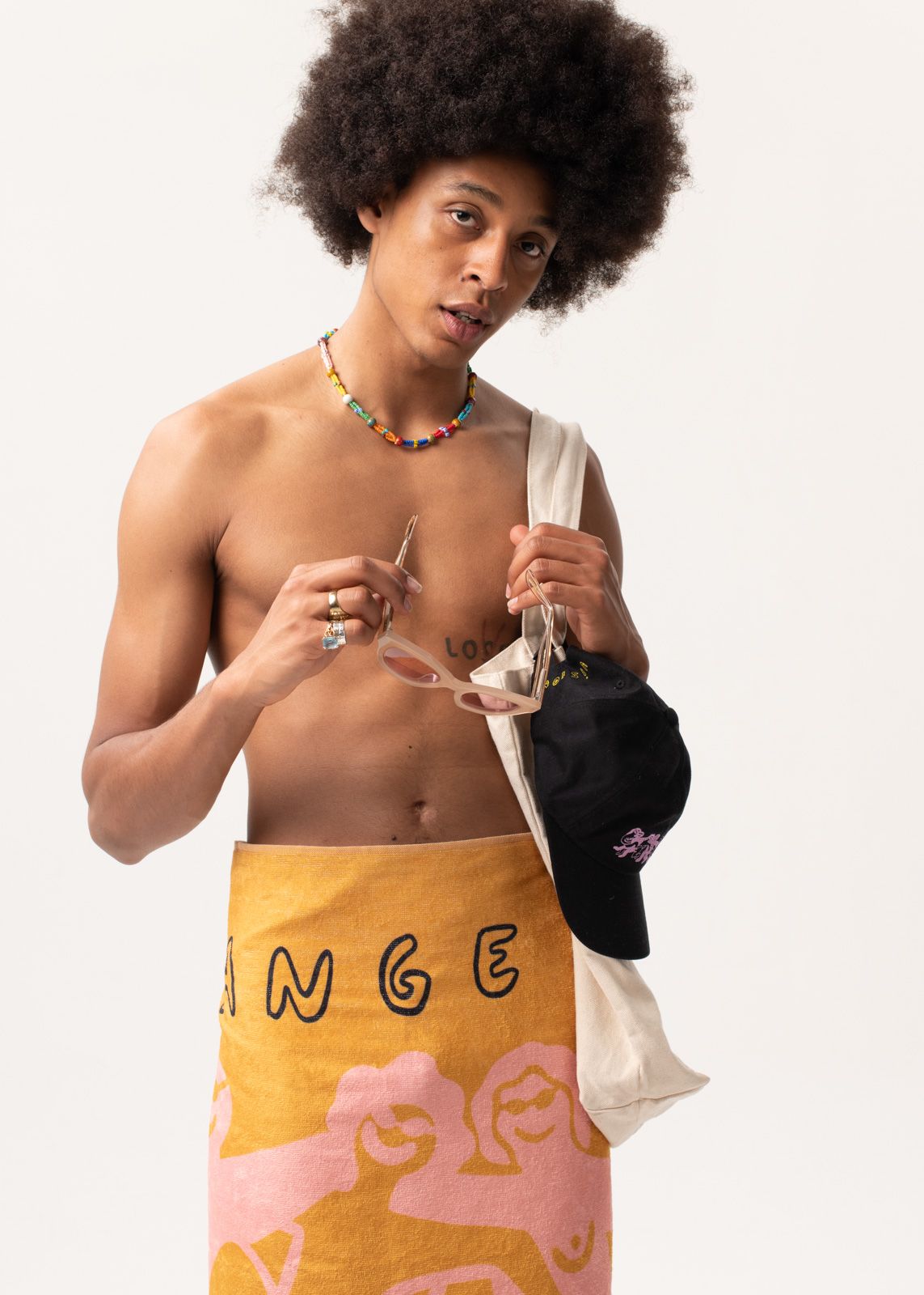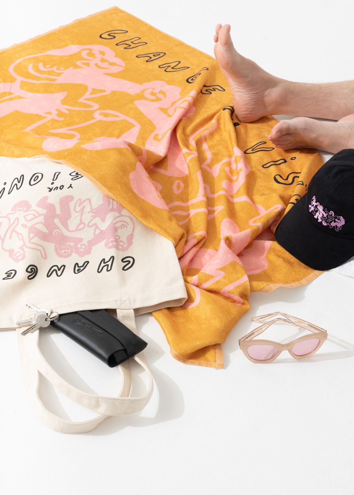 The exclusive Summer of Love pack comes in two exclusive colorways, each packed with eco-friendly merch, all of which include an embroidered cap, a beach towel, and an exclusive tote bag all adorned with Carne Bollente’s signature illustrations. The supreme quality of Ace & Tate coupled with Carne Bollente’s forward-thinking mindset transcends this collaboration above and beyond — each piece imbued with sex-positive messages.