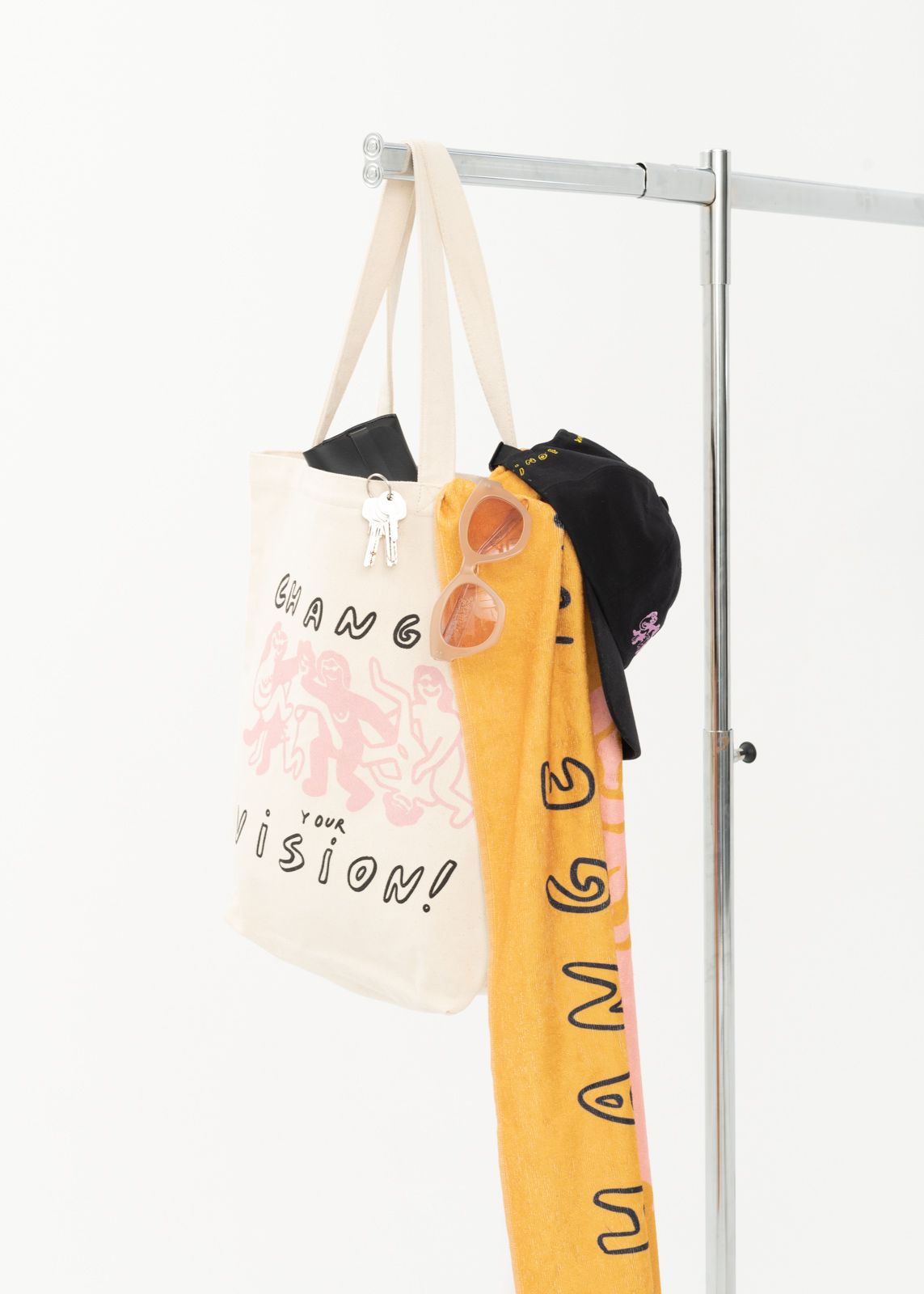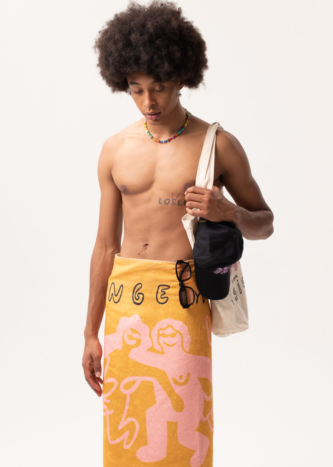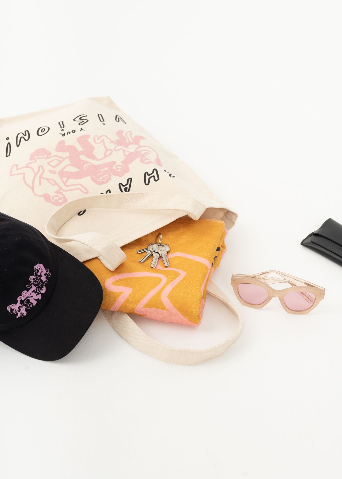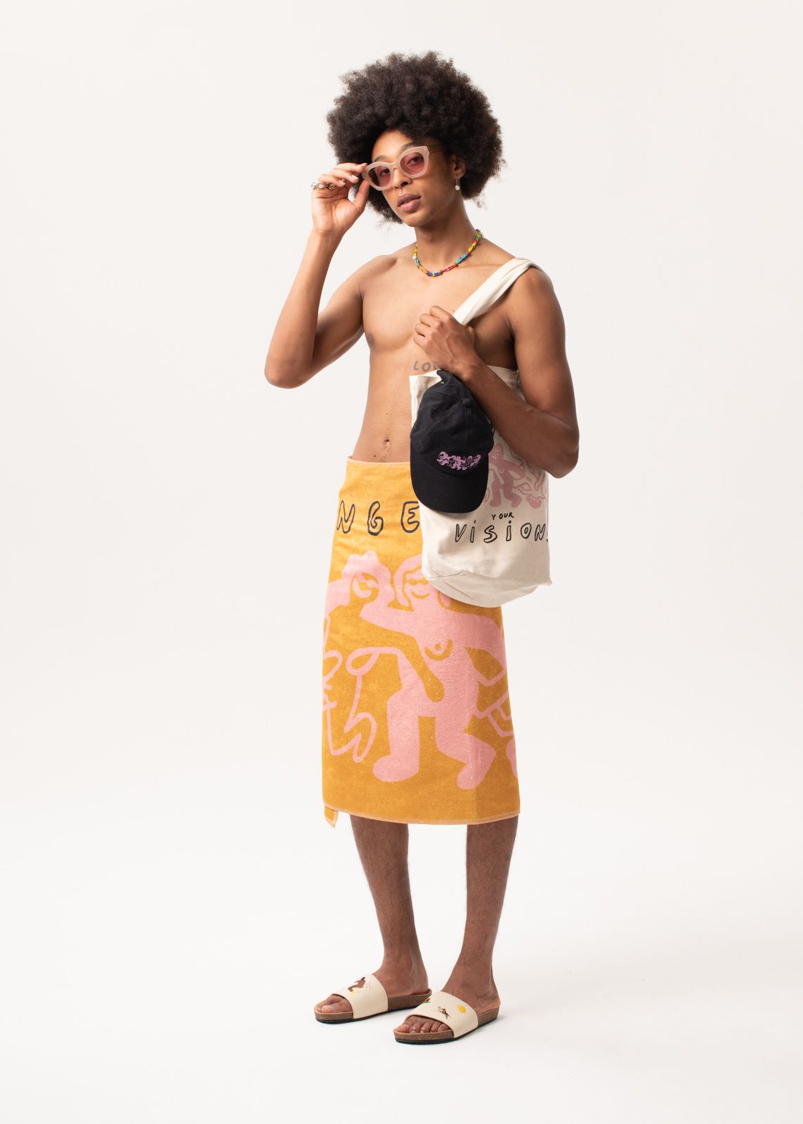 The exclusive Summer of Love pack comes in two exclusive colorways, each packed with eco-friendly merch, all of which include an embroidered cap, a beach towel, and an exclusive tote bag all adorned with Carne Bollente’s signature illustrations. The supreme quality of Ace & Tate coupled with Carne Bollente’s forward-thinking mindset transcends this collaboration above and beyond — each piece imbued with sex-positive messages.