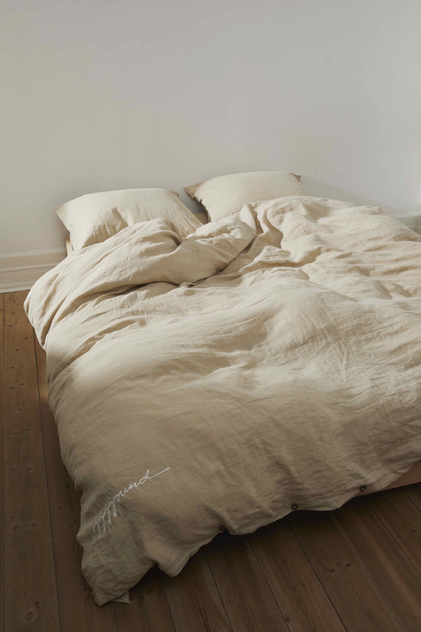 Known for its foundation in textiles, Tekla provides its knowledge of fabrics in this collaboration with the high-quality open-weave linen made in 180 GSM for a breathable and comforting weight for the wonderful items in this collection. The extra-long flax yarn guarantees strength and durability, ensuring the fabric stays soft and gentle for years to come to add more comfort to your home. Pairing minimalism with the refined aesthetics of JJJJOUND, the collection brings together comfort and an outstanding design, adding a white embroidered JJJJOUND logo to create a layered effect across the bed as a finishing touch.