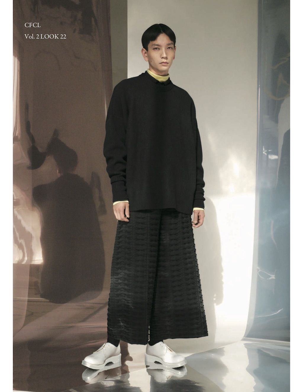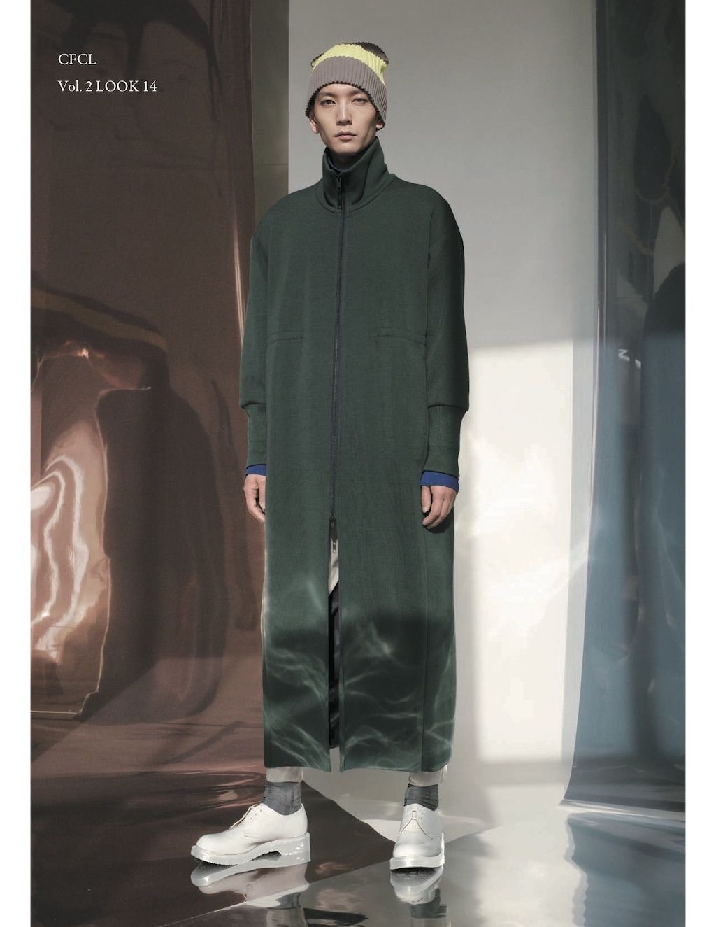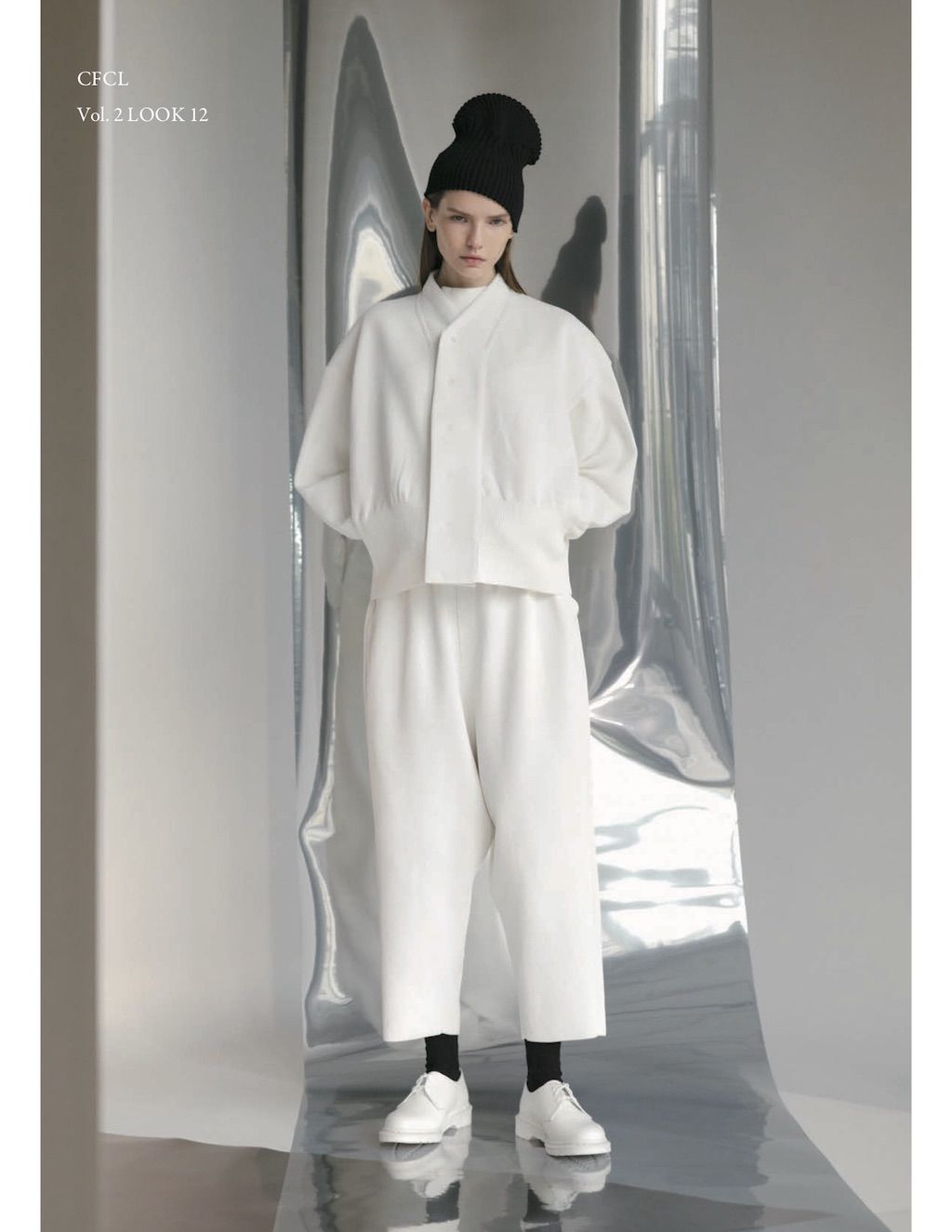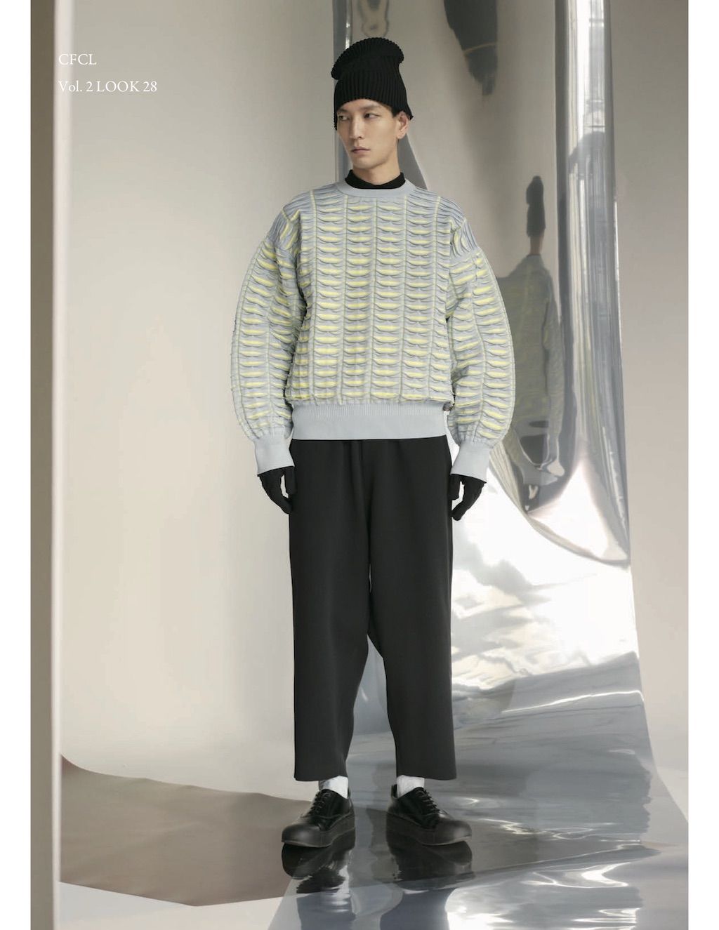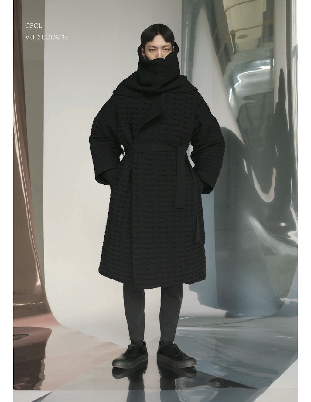 The core elements of the brand are built on sustainability and ethically made clothes that promote a minimal and modest look. With a timeless approach and ethos, CFCL implements cutting edge technology to create its astonishing garments. This season's garments consist primarily of 3D, computer-developed knitwear using certified, sustainable polyester yarns and state of the art technology. CFCL assesses knitwear as a progressive laboratory for innovative fashion-making that matches the needs of contemporary life with products that are sophisticated as they are easy to maintain.