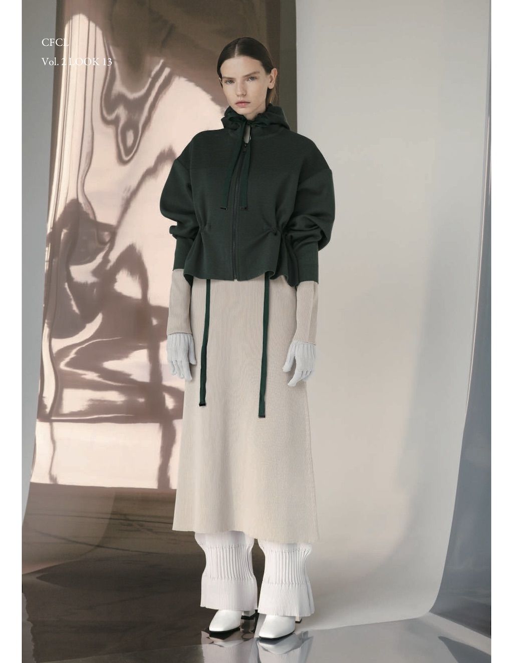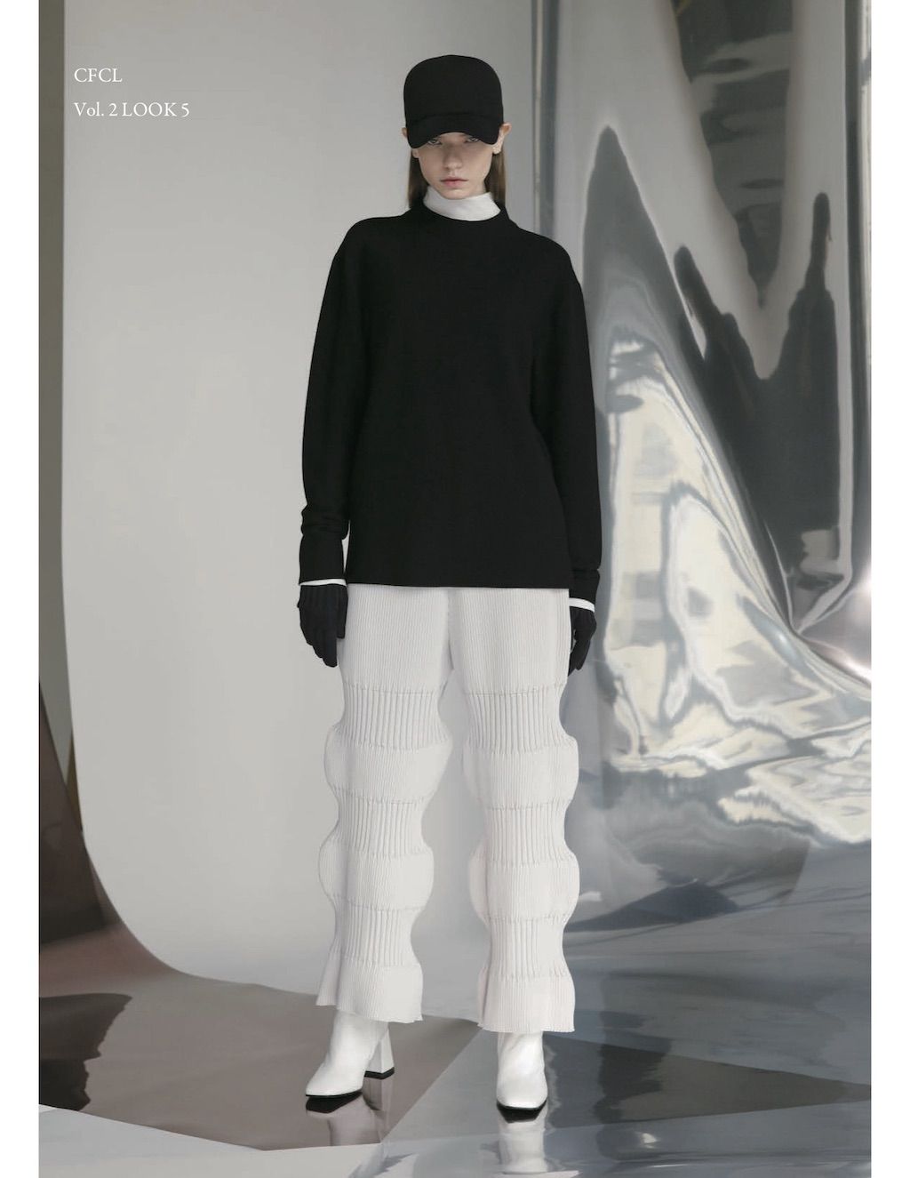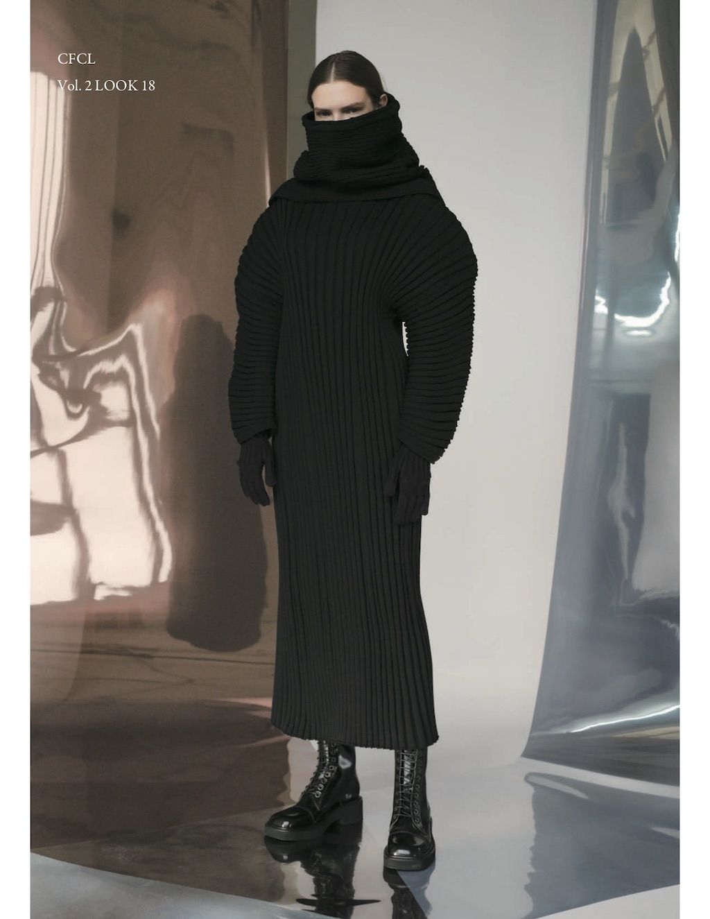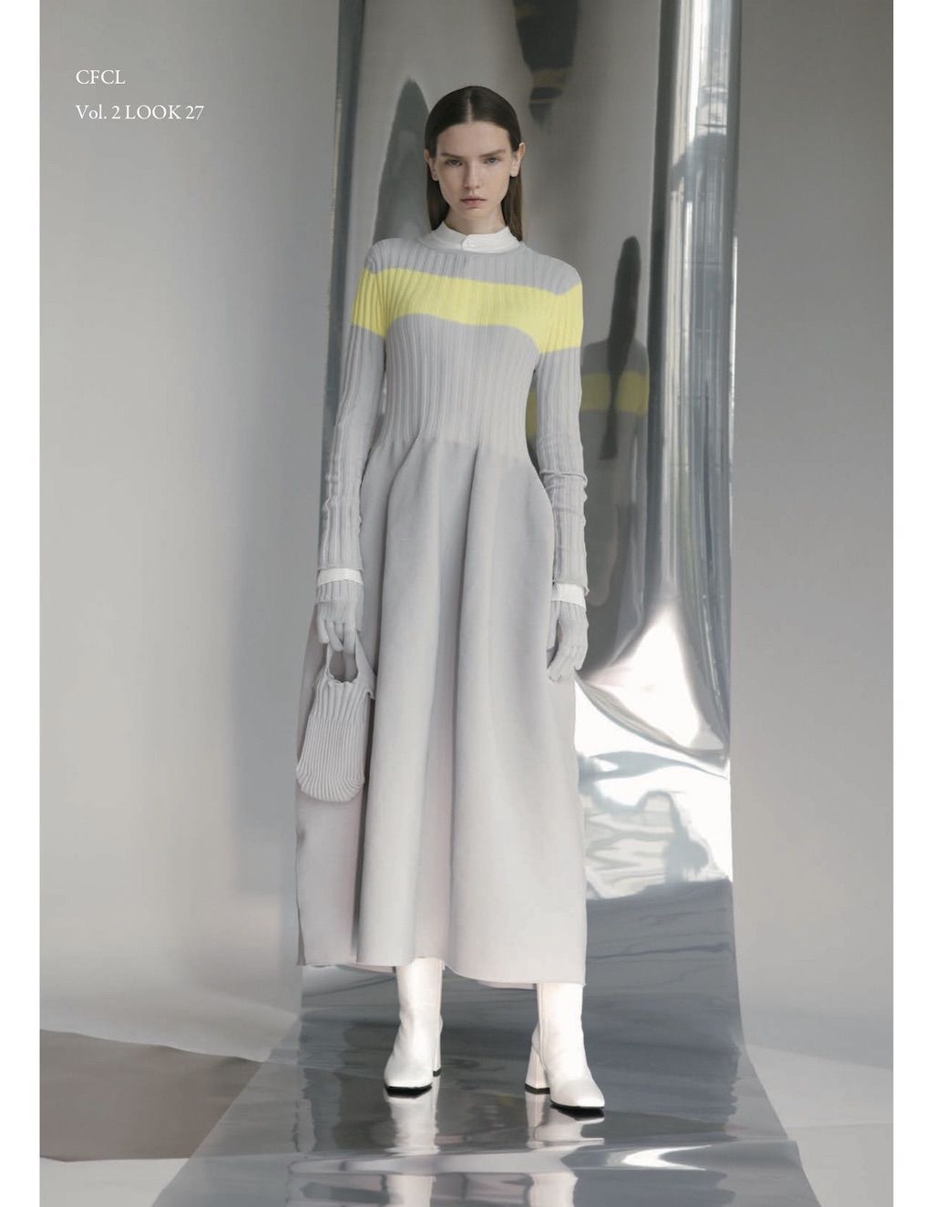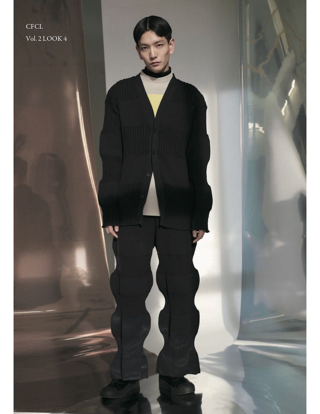 The core elements of the brand are built on sustainability and ethically made clothes that promote a minimal and modest look. With a timeless approach and ethos, CFCL implements cutting edge technology to create its astonishing garments. This season's garments consist primarily of 3D, computer-developed knitwear using certified, sustainable polyester yarns and state of the art technology. CFCL assesses knitwear as a progressive laboratory for innovative fashion-making that matches the needs of contemporary life with products that are sophisticated as they are easy to maintain.