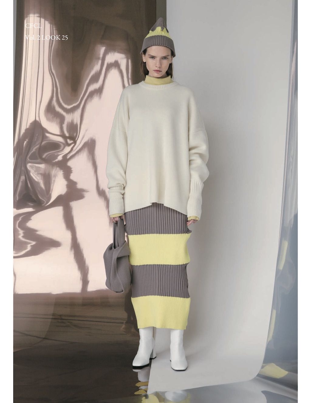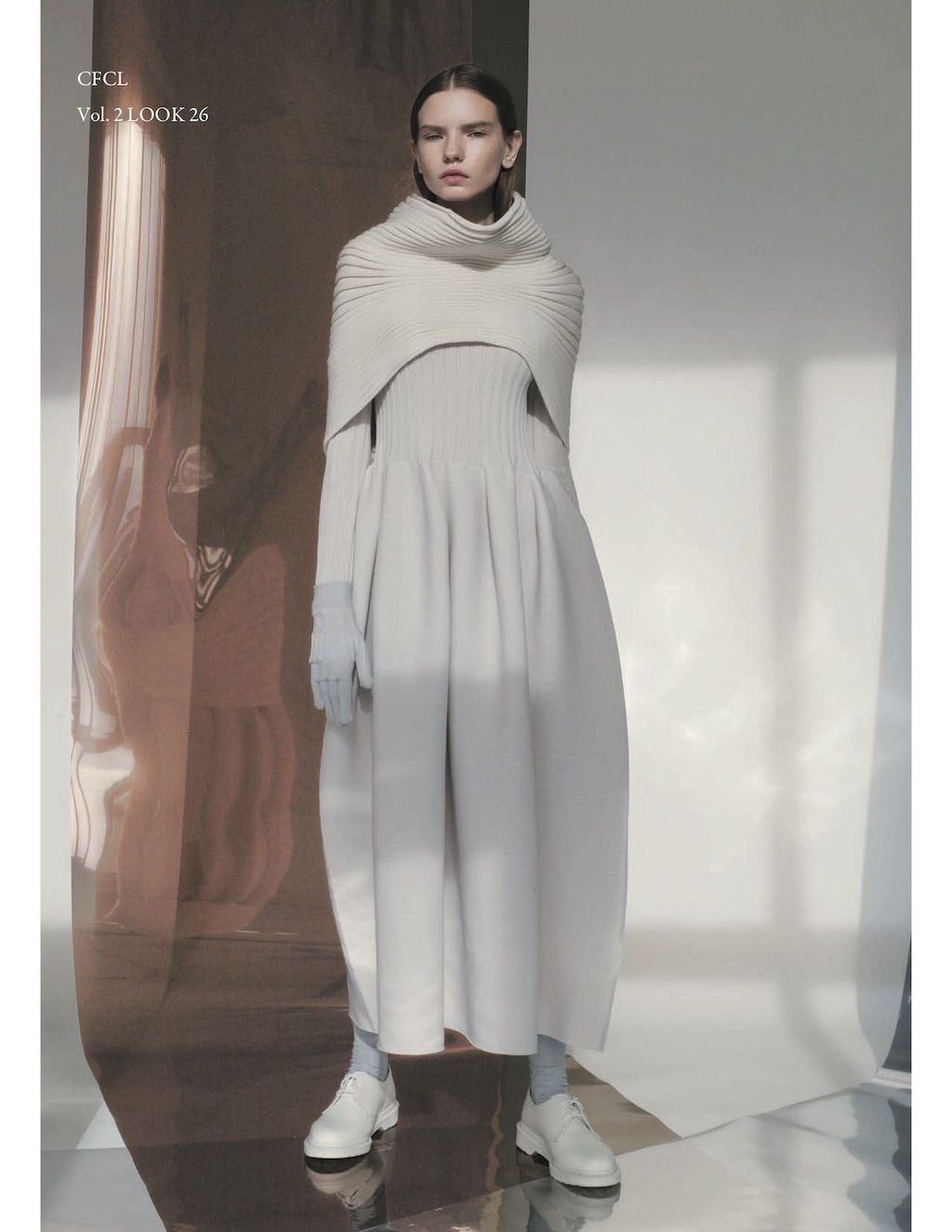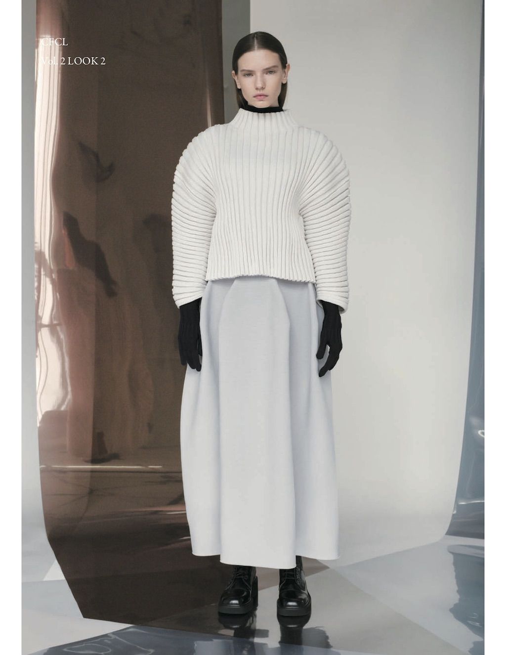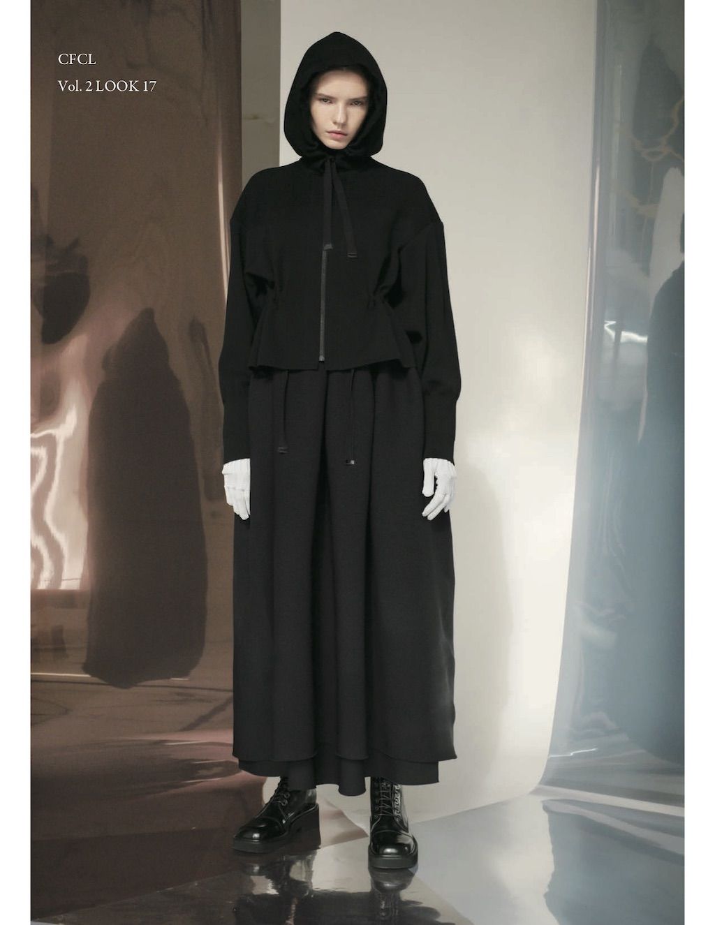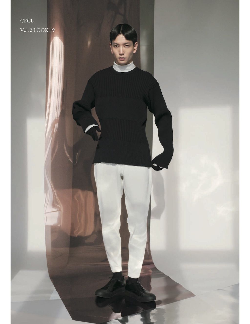 The core elements of the brand are built on sustainability and ethically made clothes that promote a minimal and modest look. With a timeless approach and ethos, CFCL implements cutting edge technology to create its astonishing garments. This season's garments consist primarily of 3D, computer-developed knitwear using certified, sustainable polyester yarns and state of the art technology. CFCL assesses knitwear as a progressive laboratory for innovative fashion-making that matches the needs of contemporary life with products that are sophisticated as they are easy to maintain.